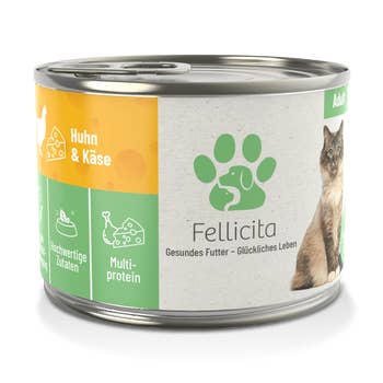 TastyCat - ganzheitliche Ernährung im Einklang mit der Natur: •Reine Fleischdosen •Ausreichend Taurin •Ohne Getreide, Gluten, Soja oder Laktose •Frei von Farb-, Geruchs- und Lockstoffen •Ohne Konservierungsstoffe •Ressourcenschonend produziert •Ohne Tierversuche! Zusammensetzung: Hühnerfleisch, -herz, -leber, -muskelmagen (52%); Fleischbrühe vom Huhn und Fasan (29%), Fasanfleisch (18%); Eierschalen, getrocknet (0,5%); Mineralstoffe (0,5%) Analytische Bestandteile Rohprotein 11,5 %, Fettgehalt 6,5 %, Rohasche 2,0 %, Rohfaser 0,2 %, Feuchtigkeit 78,0 %, Calcium 0,3%, Phosphor 0,22% Ernährungsphysiologische Zusatzstoffe je kg: Vitamin D3 200 IE, Vitamin E (a-Tocopherolacetat) 50 mg, Taurin 1500 mg, Jod als Calciumjodat, wasserfrei 0,2 mg, Mangan als Mangan-(II)-Sulfat 2 mg, Zink als Zinksulfat, Monohydrat 20 mg Nfe-Gehalt: 1,8% - in der Trockenmasse 8,18% Fütterungsempfehlung: 200-400 g täglich für eine ausgewachsene Katze mit ca. 3-5 kg Gewicht.
