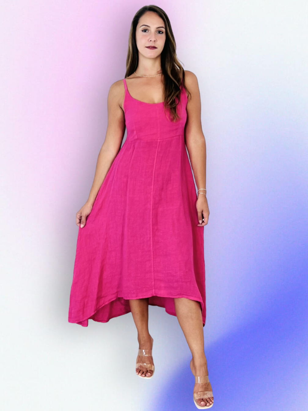 REF 24098 Ballonkleid aus 100 % Leinen mit breiten Trägern im Großhandel