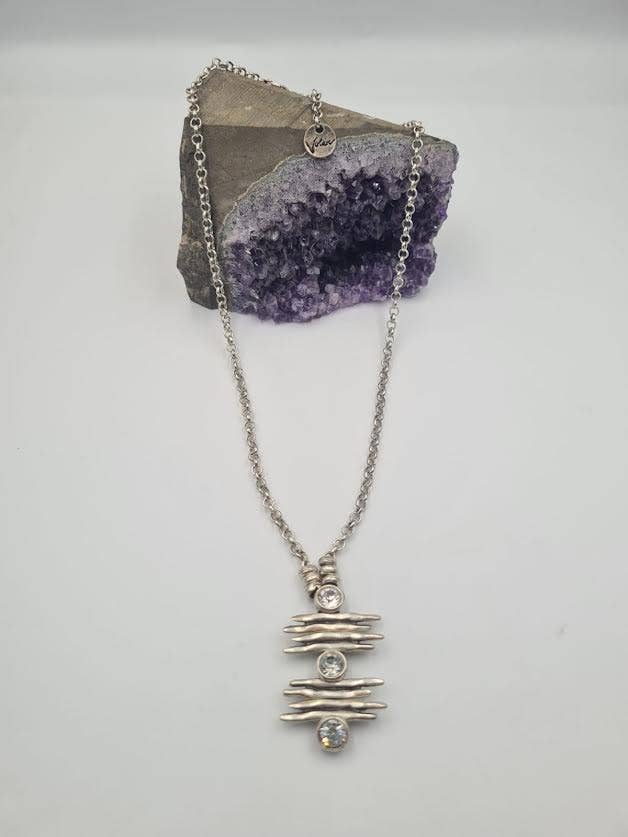 Römisch inspirierte Ohrringe in Diamantform aus Zinn, versilbert. Ohrhaken: Messing, versilbert. Oxidiertes Metall verleiht einen geschichteten, skulpturalen Effekt und verstärkt den Kontrast zwischen den Oberflächen. Die kräftige, abstrakte Form entspricht dem Mid-Century-Modernist-Design mit skulpturaler, architektonischer Form und macht sie perfekt für jemanden, der minimalistischen, aber dennoch auffälligen Schmuck schätzt.