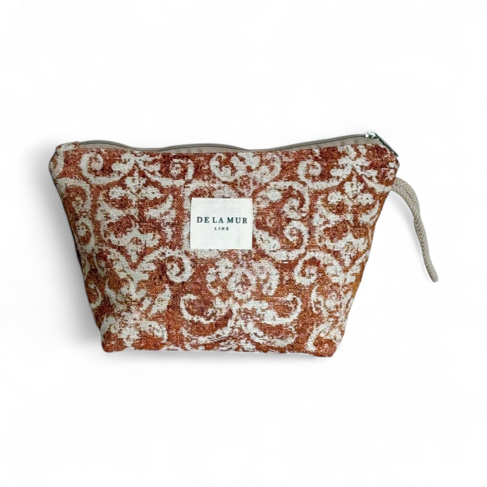 Shopper mit Reißverschluss MOSTI Diese rechteckige Shopper von De La Mur Line ist aus einem dicken Jacquardstoff mit einem beige Ornamentmuster auf einem rostbraunen Hintergrund gefertigt. Die Struktur und Farbkontraste verleihen dem Stoff ein klassisches und barockes Aussehen. Die Tasche zeichnet sich durch ihr elegantes Silhouette mit leicht gerafften Seiten aus, was für ein raffiniertes Erscheinungsbild sorgt. Dank der großzügigen Größe bietet die Tasche ausreichend Platz für Ihre täglichen Bedürfnisse - oder sogar einen kleinen Laptop. Das Design macht die Shopper sowohl für einen lässigen als auch geschäftlichen Look geeignet. Hergestellt aus einem hochwertigen Stoff, der die Tasche robust macht. Vollständig gefüttert und mit Reißverschluss verschließbar. Organisieren Sie Ihre Shopper mit passenden Kosmetiktaschen, Etuis, Brillenetuis und Geldbörsen aus der Kollektion. Produktinformation * Handgefertigt in Barcelona * Hergestellt aus nationalen (spanischen) Stoffen * Material: Jacquard * Zwei robuste Henkel * Gefüttertes Innenleben * Mit Reißverschluss verschließbar * Maße: 34 cm breit, 36 cm hoch * Waschbar in kalter Handwäsche (nicht im Trockner) De La Mur Line Mit Liebe entworfen und hergestellt!
