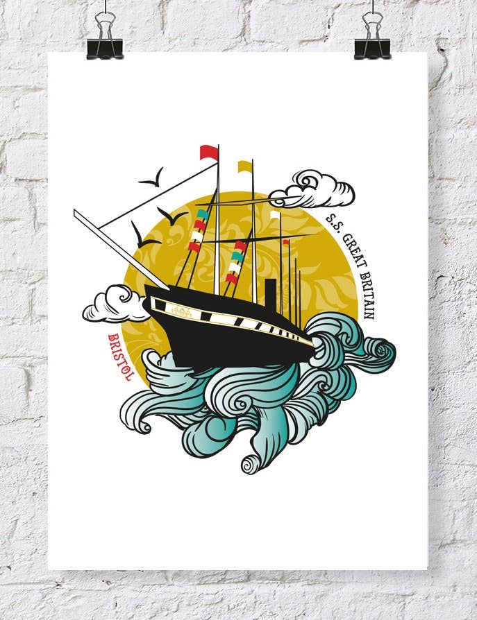 Farbenfroher typografischer Digitaldruck, der Wahrzeichen und Architektur feiert. Größe A4 (8-1/4 x 11-3/4 Zoll)