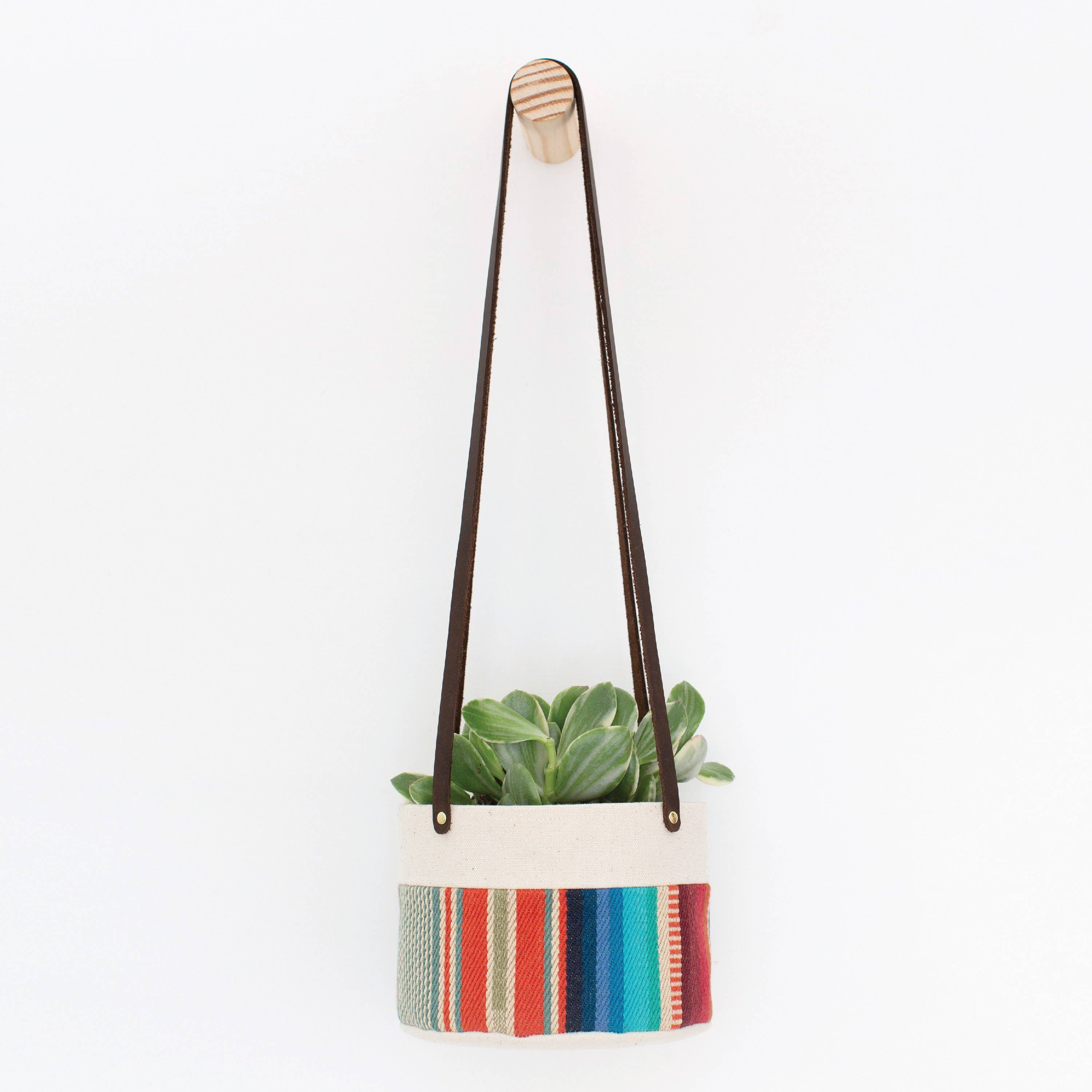 Unsere Pflanzkörbe werden aus natürlichem Segeltuch und gewebter Baumwolle entworfen und handgefertigt, sodass sie leicht und unzerbrechlich bleiben. Im Inneren befinden sich ein Pflanztopf aus Kunststoff und eine Untertasse, die perfekt passt, damit die Pflanze direkt in die Körbe gewässert werden kann, gut abtropfen lässt und gesund bleibt - und das alles während der Stoff vor Feuchtigkeit geschützt wird. Es wird an einem geölten Lederband aufgehängt, das mit Messingnieten gesichert ist. D E T A I L S: - 6" Durchmesser x 4,5" hoch - 6 „Kunststoff-Pflanztopf und Untertasse im Inneren enthalten - 100% Baumwolle, schweres, natürliches Segeltuch - 100% gewebte Baumwolle - Zwei ~30" langes geöltes Lederband mit Messingnieten gesichert - Die Platzierung des gewebten Stoffmusters variiert geringfügig Alle Produkte von Good Company werden in San Jose, Kalifornien, handgefertigt.