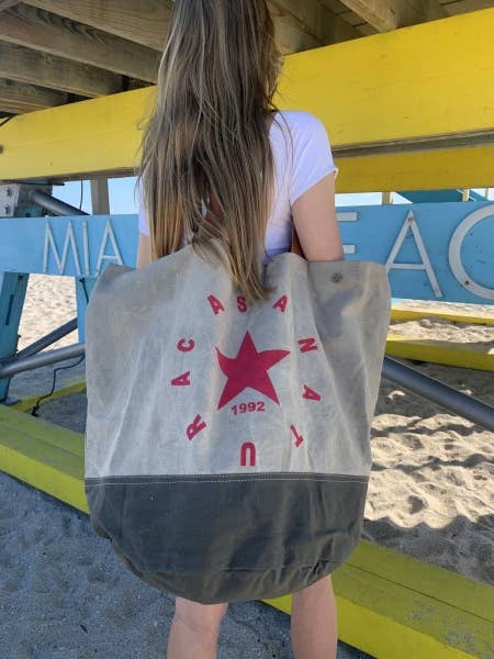 Die Erfolgs-Tasche Nummer 1 von Casa Natura seit 1992: Eine neue Canvas-Strandtasche für alle Jahreszeiten. Jede Tasche ist ein Unikat mit bewusstem Vintage-Stil. Die Drucke variieren in der Intensität, was den Vintage-Charakter unterstreicht. Handgefertigt 100 % vollständig gefütterte Baumwolle