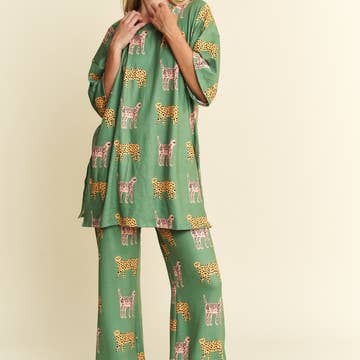Set aus Oberteil und Hose mit Gepardenmuster im Großhandel