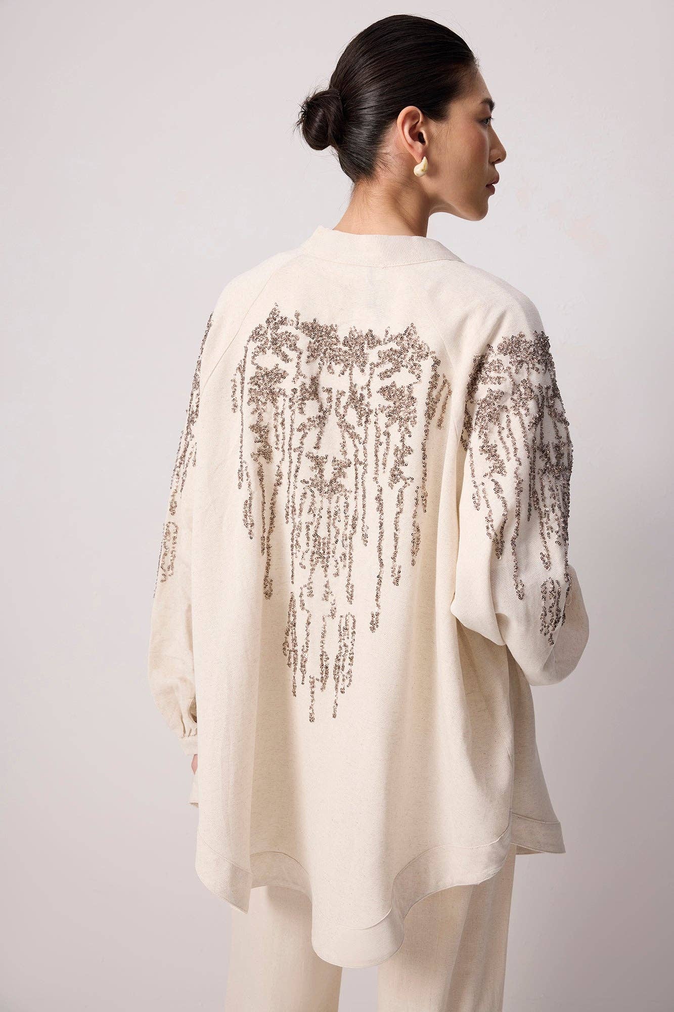 BOHO FLORALE BESTICKTE KIMONO-JACKE - LEINEN-VISCOSE-MISCHUNG