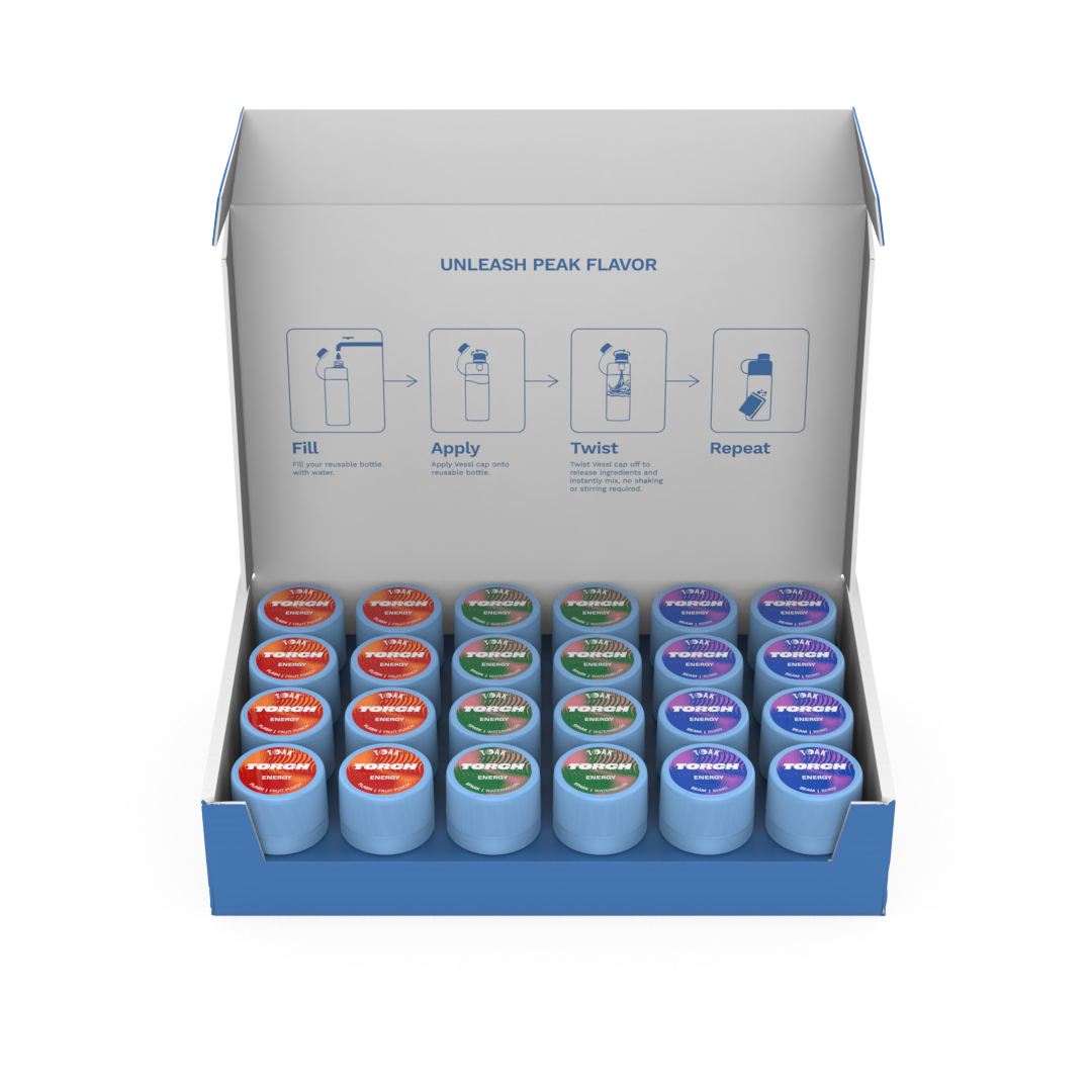 Tanken Sie Energie ohne Kompromisse mit dem neuesten wiederverwendbaren Flaschen-Starterkit von TOAK! Nehmen Sie mehrere Getränke in Form von tragbaren Aromakappen mit und tanken Sie Energie, wohin Sie auch gehen. Unser Starter-Kit mit kräftigen Aromen, die Feuchtigkeit spenden und Energie spenden, enthält jetzt 6 aromatisierte Kapseln sowie ein neues wiederverwendbares Flaschendesign. Kein Teetrinker? Kein Grund zur Sorge! Diese neue Linie enthält neue belebende Aromen und ist unser erstes Getränk ohne Tee. ENTFACHEN SIE IHRE ENERGIE, STRAHLEN SIE IHR LICHT AUS UND SPENDEN SIE IM HANDUMDREHEN FEUCHTIGKEIT! Beinhaltet: • Eine wiederverwendbare Flasche • 2 Energiekapseln mit Spark-Geschmack (Wassermelone) • 2 Energiekapseln mit Flash (Fruit Punch) -Geschmack • 2 Energiekapseln mit Beam (Berry) -Geschmack
