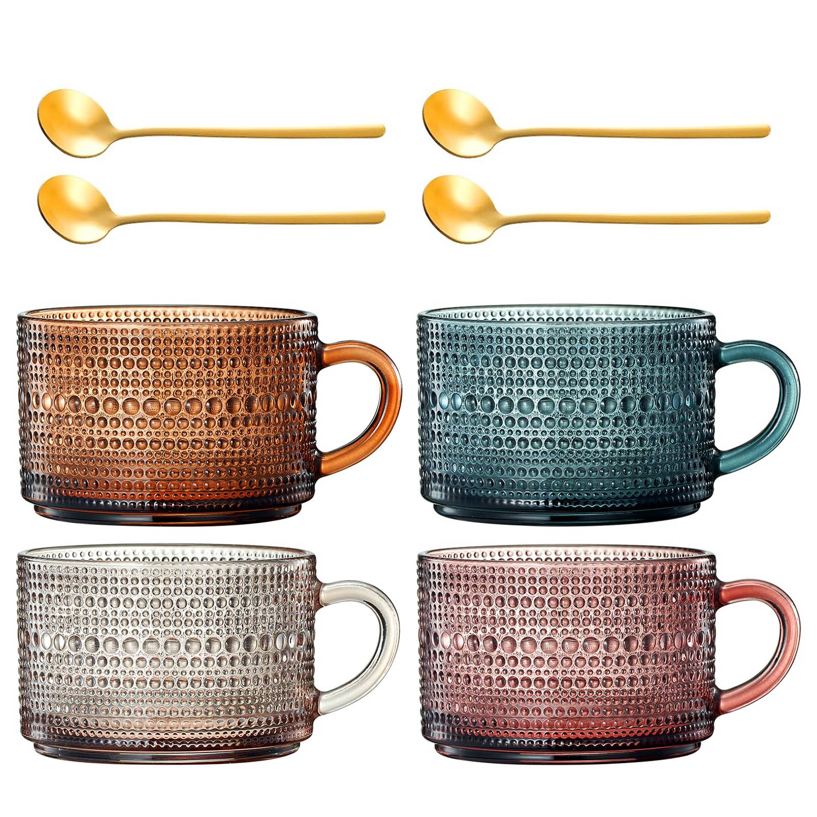 Hobnail Kaffeebecher-Set im Vintage-Stil aus Glas mit Griffen | Set von