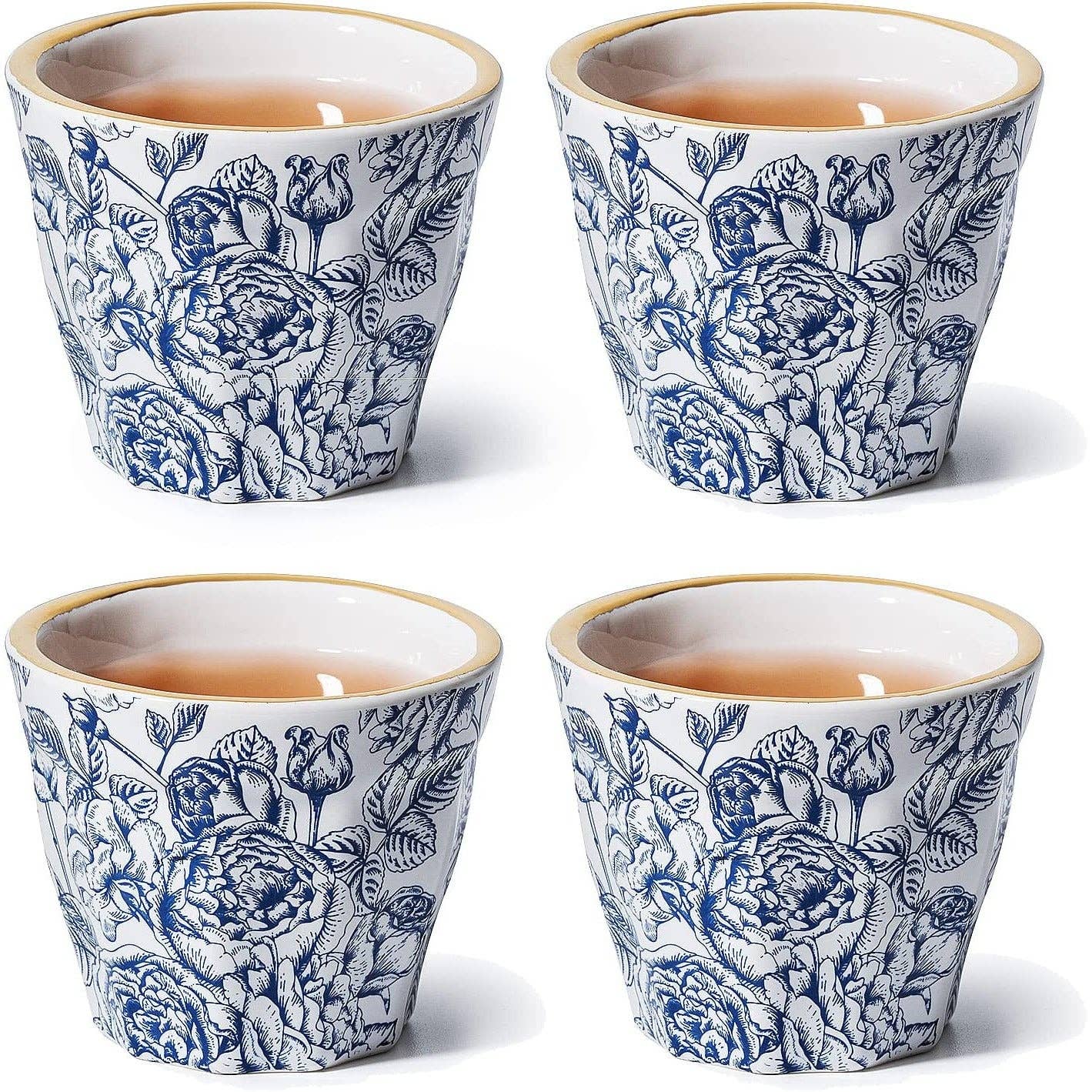 Espresso Beautiful Keramik-Kaffeebecher mit Blumenmuster, 4er-Set