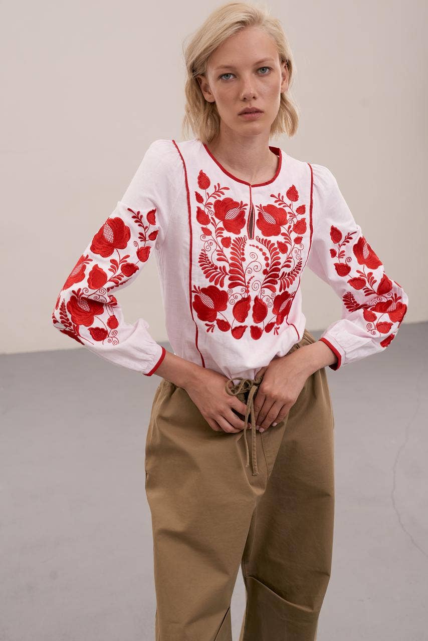 If you've been looking for the highest quality, truly unique embroidered goods, you've come to the right place! We are a design studio that manufactures quality clothes from natural materials in heart of Ukraine. We look forward to collaborating! Please Notify: Embroidery patterns, colors, and thread shades may vary slightly from the photos shown on the website. Several factors can influence how the product appears, including: -Lighting conditions during photography -Angle and intensity of light reflecting off the fabric -Screen settings and device displays, which may alter color perception -Slight production variations that do not affect the overall design or quality -These subtle differences do not affect the beauty or quality of the product, and we appreciate your understanding. Most of our items is made to order, time of production depends on quantity. After order our manager will contact with you. Are you interested in large quantities? Write to us, we will give you our best offer! Thank you! With love from UKRAINE!