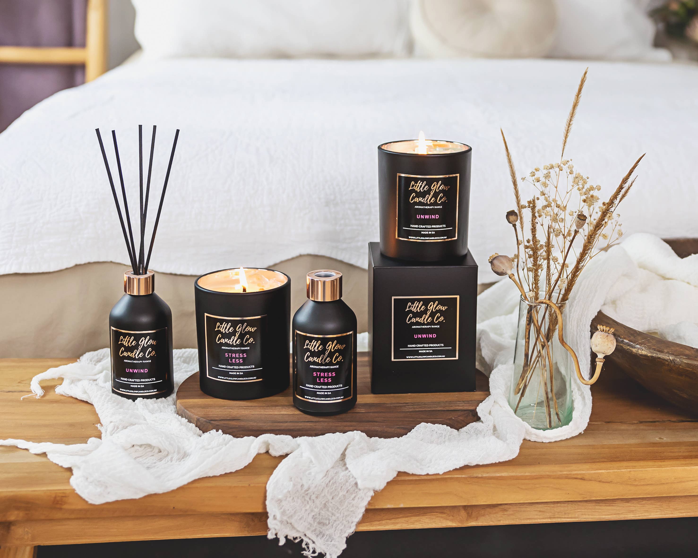 Are you searching for the perfect way to create a cozy and inviting atmosphere in your home? Look no further than Little Glow Candle Co., your go-to small biz for handcrafted soy wax candles, reed diffusers, soy wax melts, and more. Based in Adelaide, South Australia, we pride ourselves on creating exquisite home fragrance products with the highest quality ingredients. We believe that scent has the power to transform any space into a sanctuary. Whether you're looking to create a calming oasis or enhance the ambiance of your living space, Little Glow Candle Co. has everything you need to ignite your senses and elevate your home. Experience the warmth, beauty, and elegance of our handcrafted creations, made with love and care for you to enjoy. Welcome to Little Glow Candle Co., where our passion for scent meets the essence of self-care, brightening your world one flicker at a time.