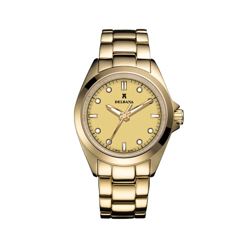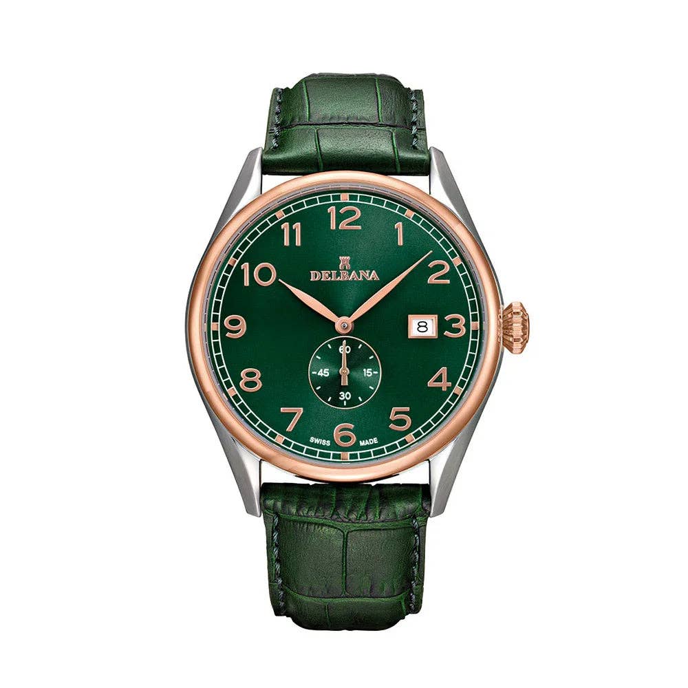 Gegründet im Jahr 1931, fertigt Delbana seit Generationen hochwertige, in der Schweiz hergestellte Uhren. Die Marke verbindet Tradition mit kontinuierlicher Innovation, um Uhren zu liefern, die sowohl zeitlos als auch zuverlässig sind. Die heutige Kollektion umfasst elegante Damenuhren, distinguierte Herrenuhren und kühne, rennsportinspirierte Sportuhren – entworfen mit Eleganz, Leistung und anhaltender Anziehungskraft. Für Einzelhändler bietet Delbana attraktive Margen, niedrige Mindestbestellmengen und einen konstanten Lagerbestand, was unsere Uhren leicht verkäuflich und eine vertrauenswürdige Ergänzung für jedes Sortiment macht.