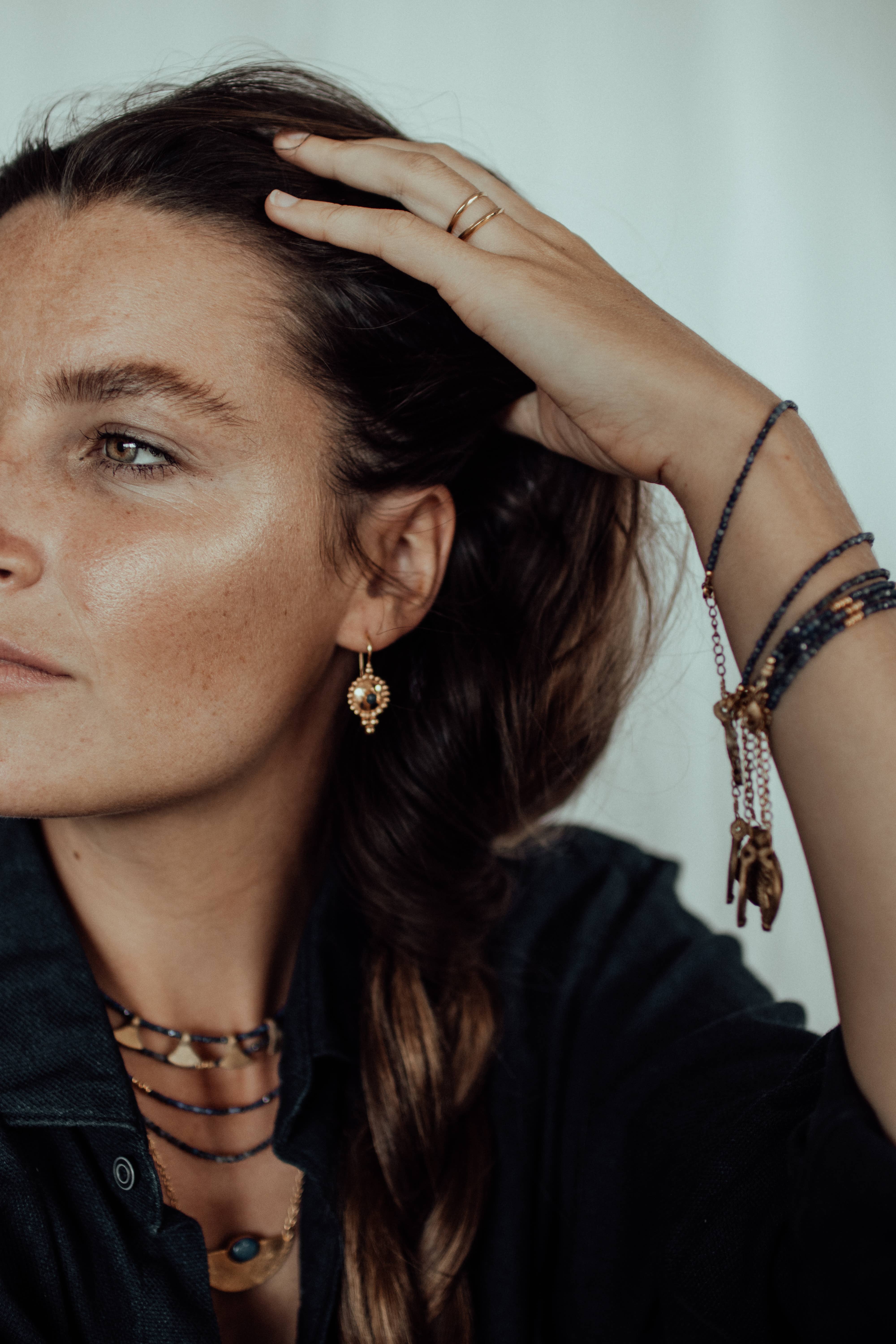Chandra Collections was born in a small sacred village of Rajasthan, India. It started as a way of sharing beautiful unique pieces of jewellery after years of connection to Rajasthan it began being made in the village. Julia Ferrari, creator of Chandra brand has a personal connection with the people of the village and where the jewellery is made. She believes in the sacred energy of the land and the energy the jewellery is created. Julia finds inspiration in the beauty of the desert and the women who always have made jewellery, travelling around, sharing their unique talismans. The jewellery is a reminder of our own uniqueness and beauty, reconnecting us with our authenticity and accentuating our expressive personality in a statement.