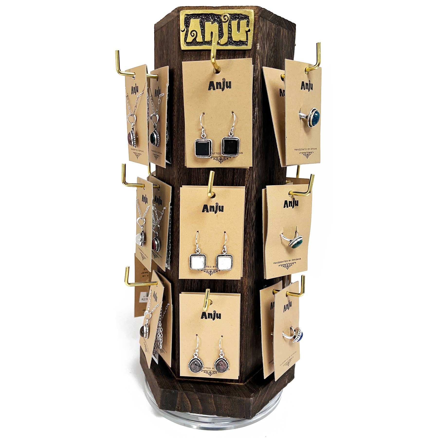 Anju Jewelry is a 100% sustainable jewelry brand committed to creating hope for artisans and their families through economic empowerment. All of our pieces are hand-crafted in India using traditional techniques. The roots of Anju Jewelry began in 1993 when India natives Anju & Gaurav Agarwal decided to invest in their future and move to America. While Gaurav spent his days working on his PH.D., Anju began designing and making jewelry to sell at local craft fairs. As her jewelry sales started to take off, Gaurav decided to quit his job and focus all of his attention on growing Anju's jewelry business. Business continued to grow and on a trip back home to India, they met a talented, but struggling group of artisans that could not keep consistent work. It was then, that Anju and Gaurav decided to partner with this artisan group and move manufacturing to India where they knew they could provide them with consistent work. We are happy to confirm that more than 9 years later, we are still working with this very same artisan group and over the years the quality of life for these workers has improved significantly. 100% Handcrafted Pewter, Mixed Metal, and Silver-plated Jewelry. Chokers, leather bracelets, rings, and jewelry crafted from re-purposed saris. Hand-carved block printed cotton bags with natural dyes. Ethically sourced horn jewelry.