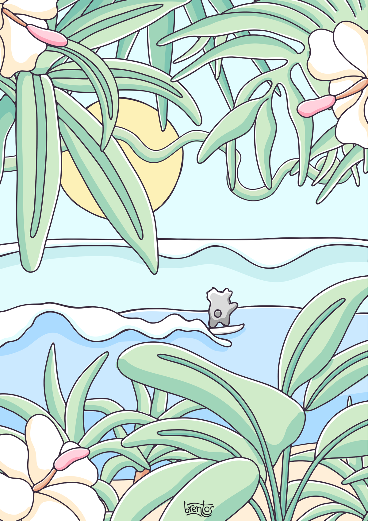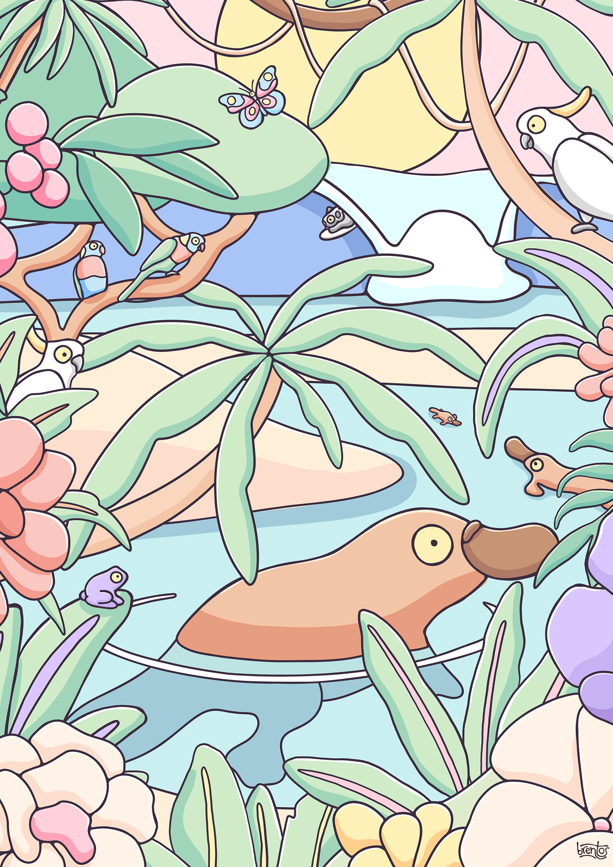 Brentos is Australian illustrator artist Brent Turner, and French-Canadian born Tash Leemburg. If we haven't met yet, it's awesome to meet you! We paint murals, illustrate picture books, design merch and try to bring a bit of stoke to the world whilst shining a light on how cool Aussie wildlife and the natural world is. Brentos' books have collectively sold over 50,000 copies within Australia and have been shortlisted for a number of awards including CBCA New Illustrator, CBCA Eve Pownall, ABIA Picture Book of the Year, Indie Book Awards and Wilderness Society's Environment Award for Children's Literature. His success has seen him sign an additional 3-book deal with publisher Affirm Press. We have collabed with many beloved Australian and international brands renowned for premium products, strong values and a commitment to bettering the world. Our list of collab partners include: Peter Alexander, Coopers Brewery, World Surf League, Surfing Australia, Greenpeace, WIRES, Hallmark, Reddit, Crocs, Sydney Wildlife Rescue, Buckettys, Envoy Foundation and more.