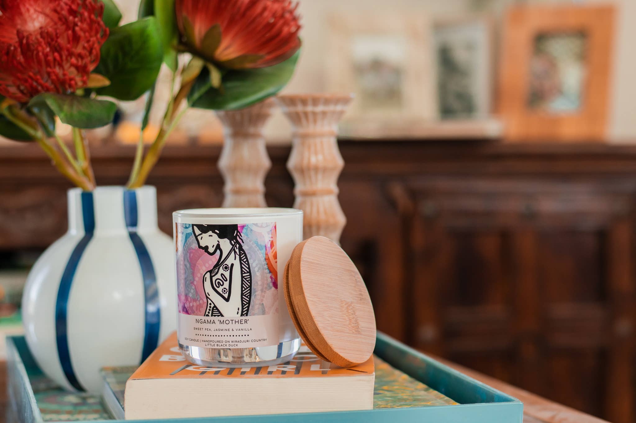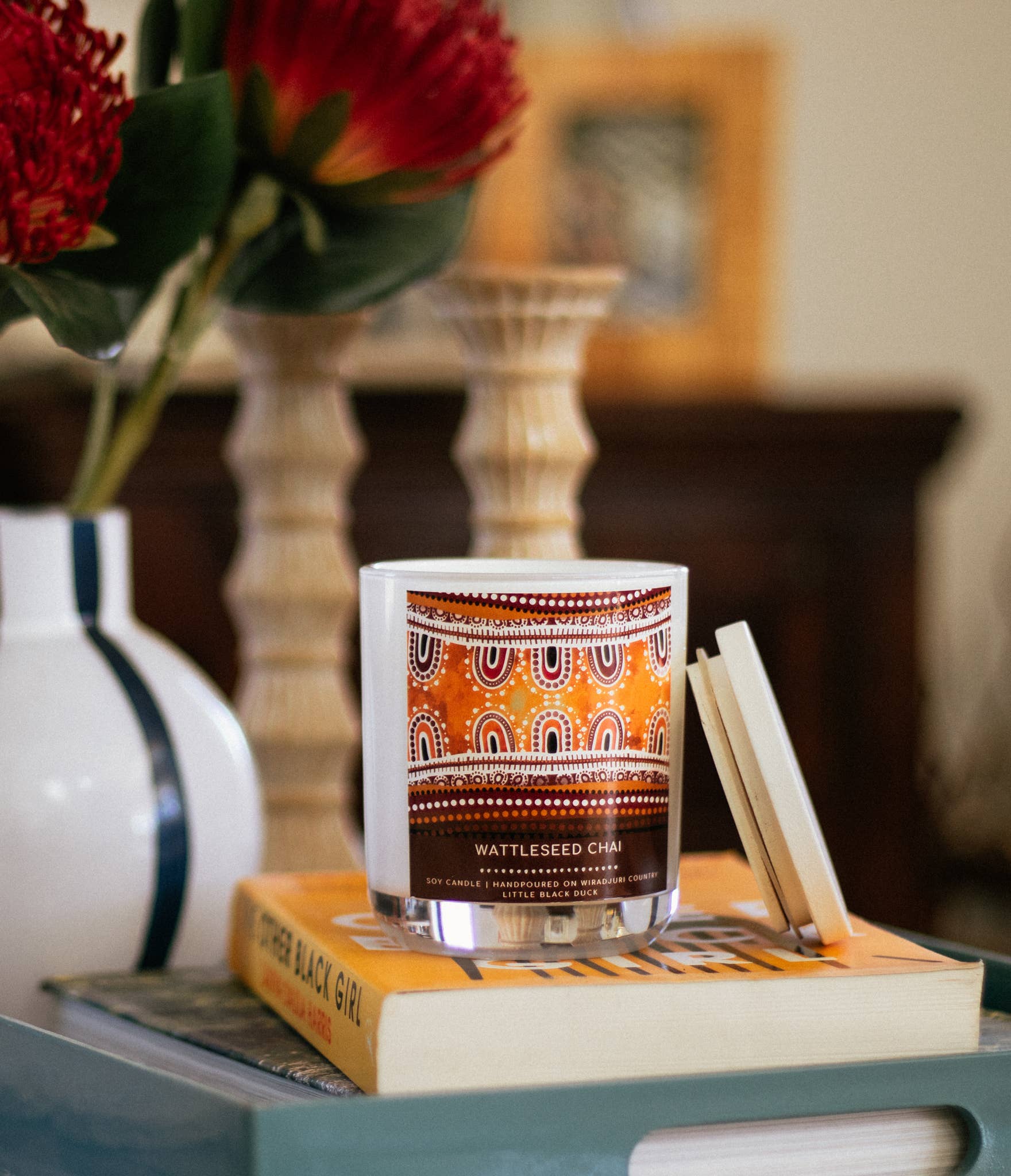 Little Black Duck is proudly located on Wiradjuri Country (in regional NSW, Australia) in the quaint village of Uranquinty on the outskirts of Wagga Wagga and is the brainchild of Ashleigh Pengelly. A 100% Aboriginal-owned small business created in 2015, combining creative, fun and functional art pieces with the hope of sparking meaningful conversations within your home, Little Black Duck uses a range of unique mediums and surfaces to create a memorable brand of functional art that is loved the world over. From her signature one-of-a-kind Hand-Painted Teapots and Serving Boards to the Quintessentially Australian range of candles adorned with her art, to the stunning array of handmade Earrings created in the Little Black Duck studio, Ashleigh has created a brand that spreads love, colour and awareness of her Aboriginal culture and heritage.