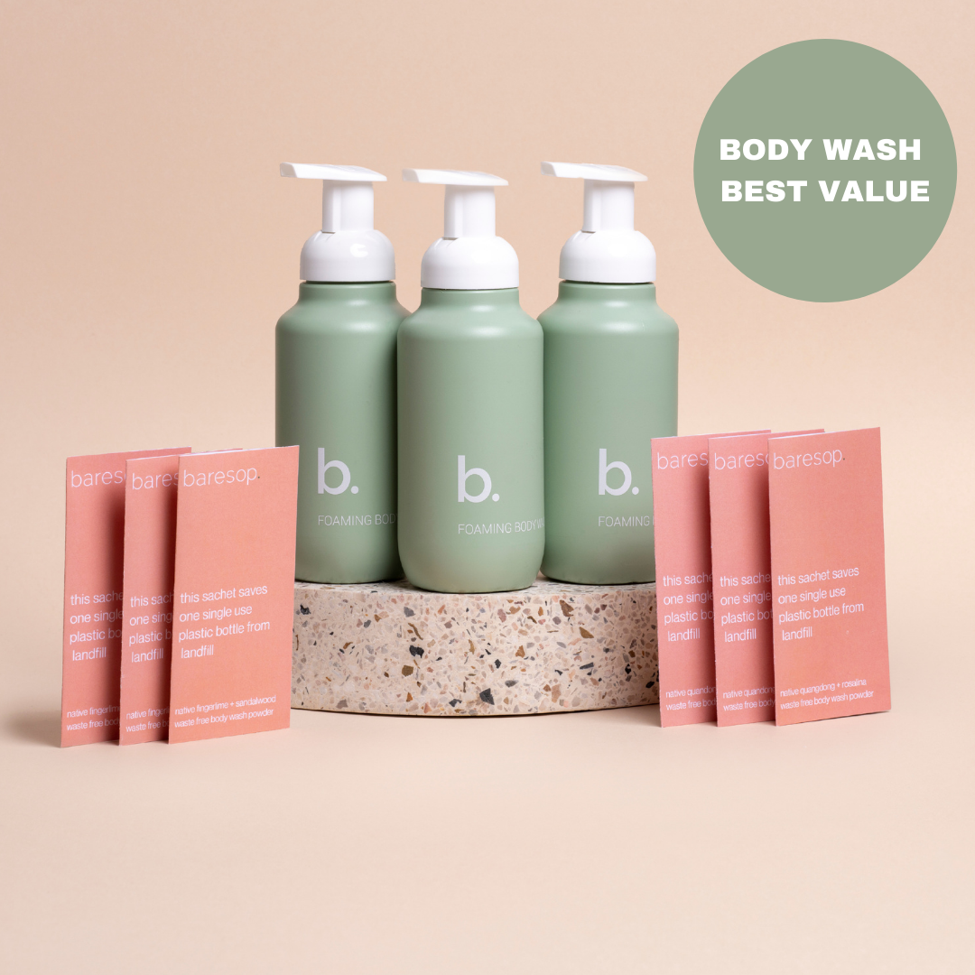 Your traditional hand, body, shampoo and conditioner is 90% water and 10% active ingredients. Essentially, we're just shipping and storing diluted water and plastic across the world. This results in tonnes of carbon emission and billions of single-use plastic waste. We have crystallised only active ingredients into a concentrated plant based powder to foam soap that makes it easy for you to reduce your waste and carbon footprint without compromising your everyday personal care experience. Our products are mindfully sourced and locally made with clean plant based, vegan and cruelty ingredients. Uplifting native Australian scents is part of our DNA. We want to make sure that you don't have to compromise on your everyday personal care in order to do good. We believe that you can do both. Our mission is to make it easy for billions of homes across the globe to reduce their single use plastic waste with a solution that’s better for their skin, health and our planet.