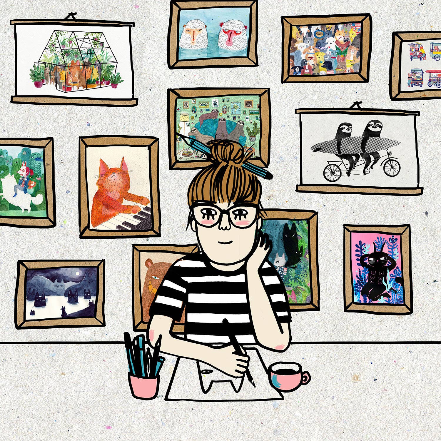 Luka Va is from a little country in North Europe called Lithuania. Since she can remember she was doodling. City cats on a window sills, people of Vilnius. Doodling has later transformed into passion and career in graphic design. But move to Australia changed everything. When the 4th generation city dweller meets wild life (ok, it might have only been a feisty possum) in the middle of the urban street, magic happens. That's how her label "Surfing Sloth" was born. Luka's cheerful, bright and quirky illustrations celebrate city lifestyle and its proximity to nature. The combination that only Australia has got to offer.