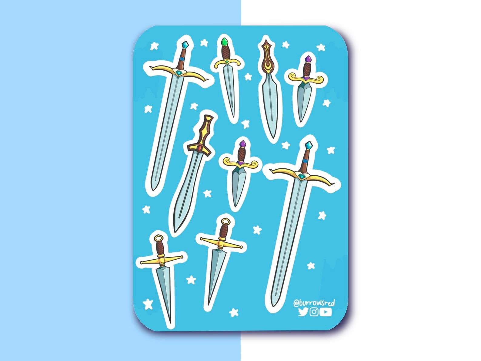 Hi! I’m Burrows 🥰✨ I’m a content creator with a love for all things fantasy. For as long as I can remember, I’ve read fantasy novels about dragons and monsters and adventurers of all kinds. My first video games were role-playing games with epic questlines to save the world. I spent hours falling in love with the lore and the worlds that I encountered. It had always been my dream to design worlds that others could fall for, too. So, when COVID-19 massively changed my job, I had an opportunity to finally pursue my dreams and start creating those worlds I daydreamed about. Creating fantasy products has been an exciting and rewarding experience. I enjoy the work, and I get to create items that I am incredibly proud of. All of my products are designed and created by me, in my studio. During my time away from Burrows Arts, I stream RPGs and art, create journaling and gaming content on Youtube and make silly Dungeons and Dragons memes on Tiktok. I can be found @burrowsred on all social media platforms.