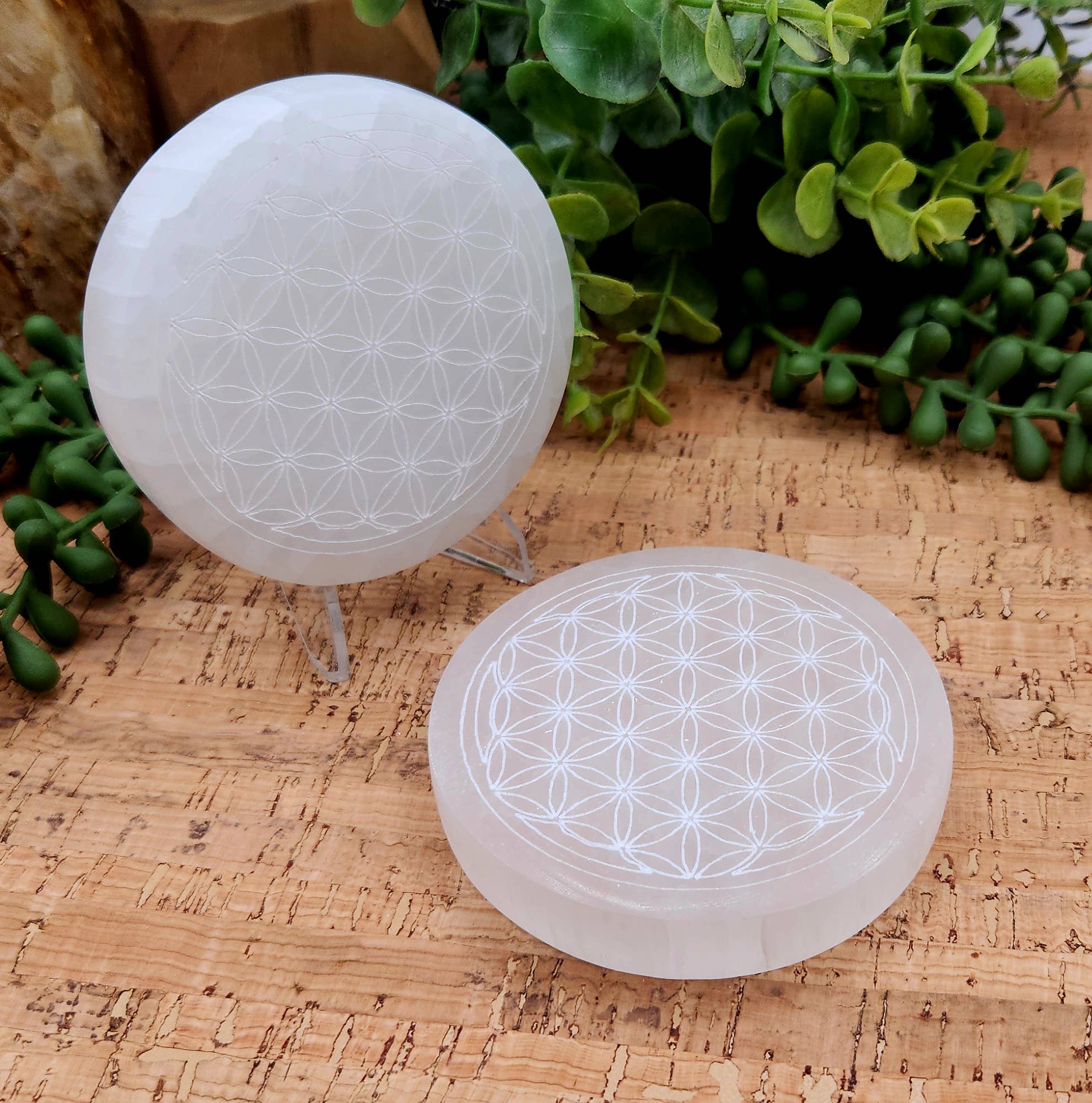 10cm Etched Tree Of Life Selenite Charging Plate