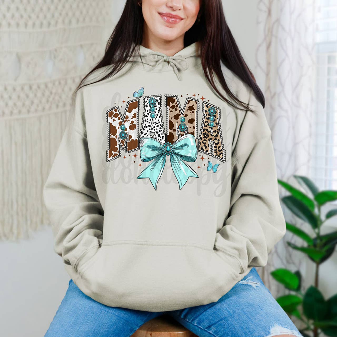 Mama Turquoise Bow DTF Heat Transfer
