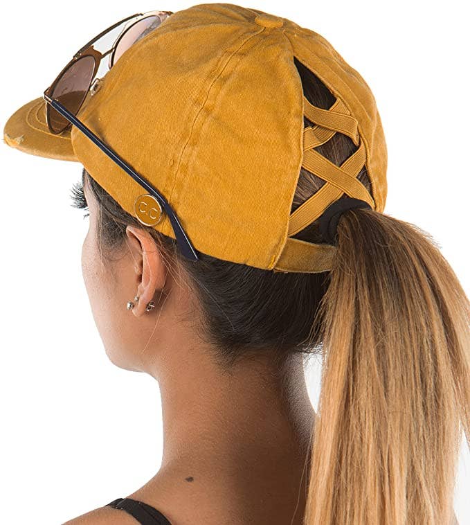 Ponytail Opening Mountain Embroidery Baseball Cap Washed Distressed Breathable Mesh Sun Hat