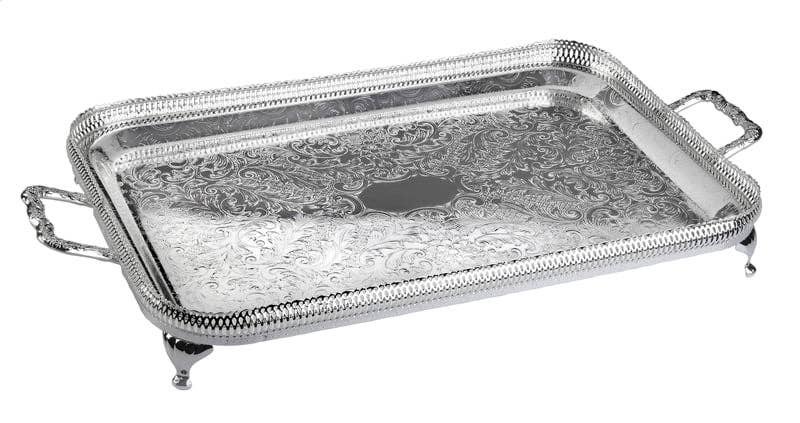 Oblong Gallery Tray/Handles/Legs 2 3/4"h x 13 1/2"w x 19 3/4"l English Silver Plate (Tarnish Resistant). SKU #: 0/6335.