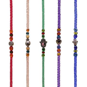 Woven thread braided macrame single strand friendship bracelet with silver metal charm centerpiece. Bracelet is adjustable with strings to tie into loop. Bracelet is lightweight and water resistant providing a comfortable fit. • Item code: BRB-CHR-BR • Sold in assorted colors and charms. • Materials: Metal Charm, Seed Bead, Thread • Handmade in Peru. Contact us or search our catalog to order custom display(s) of this product. Disclaimer: Each one of our products are handmade and unique. When ordering wholesale, customer will receive ASSORTED COLOR, AND/OR PATTERN variations of the product. *Specific colors are available for selected items upon request.