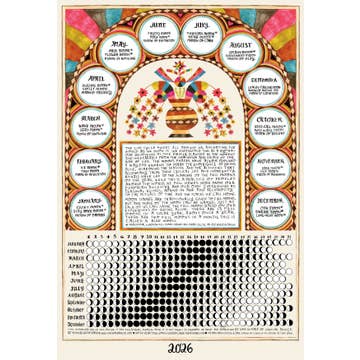 Herbal Wisdom by Brittany Wood Nickerson Illustrations by Chelsea Granger The 2026 Moon Calendar draws on the ancient and cross-cultural tradition of naming the full Moons of the year. For this project, we drew on full Moon names from our European ancestry as well as our own experience of the Moon through the seasons. There is a lot of crossover between Moon names and various cultural and ethnic traditions. The origins of some traditional names are difficult to trace - we have done our best to follow the threads of origins and have also liberally added to the list based on our personal connections to the rituals of our lives, our communities, and the seasons as we experience them. Text from the poster: The life cycle pulses all around us, animating the world as we know it. We experience this as a rhythm – our belonging at once firmly planted in the moment and inseparable from the grandeur and grace of the web of life. The Moon’s phases have always provided a way for humans to mark the experience of being alive, mirroring the seasons and the activities that accompany them. Such cyclical life and community rituals have led to the naming of the full Moons of the year. While this is a practice of peoples around the world, we pull names here from our European ancestry and our own experience as seasonal beings, bound in awe and reciprocity to the rituals of time and the places we call home. Moon names are traditionally given to full Moons, but any phase of the Moon can be named, just as each of us can name the full Moon based on our experiences of being alive. There are 13 full Moons in a solar year; about once a year, there are two full Moons in a month, this is called a Blue Moon. *Traditional European full Moon names are from Celtic or Old English origin. 13 x 19-inch poster (standard frame size). A complementary display copy will be included with your first order. Please note that we only ship through USPS. Please provide any additional information necessary via message.