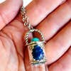 Silver-colored chain with turquoise and sodalite crystals