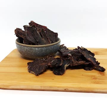 Barkly Beef Jerky, crafted from 100% premium, human-grade topside beef. Our beef jerky is a delectable, high-protein treat that will have your furry friend begging for more. Made with a single ingredient and free from additives, this natural treat is perfect for dogs of all sizes and breeds. Key Features: All-Natural Ingredients: Made from 100% beef with no additives, preservatives, or artificial flavours. High Protein: An excellent source of lean protein to support muscle growth and overall health. Gently Dehydrated: Slow-dried to preserve natural flavours and nutrients, ensuring a tasty and wholesome treat. Grain-Free and Gluten-Free: Ideal for dogs with food sensitivities or allergies. Benefits: Supports Muscle Development; Boosts Energy Levels; Promotes Healthy Skin and Coat; Easy to Digest. Perfect for: Dogs of all ages and sizes Pets with dietary restrictions or allergies Training rewards and everyday treat Supporting overall health and vitality