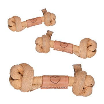 Wholesale Huggle-Hide® Natural Leather Knotted Bone Dog Toy
