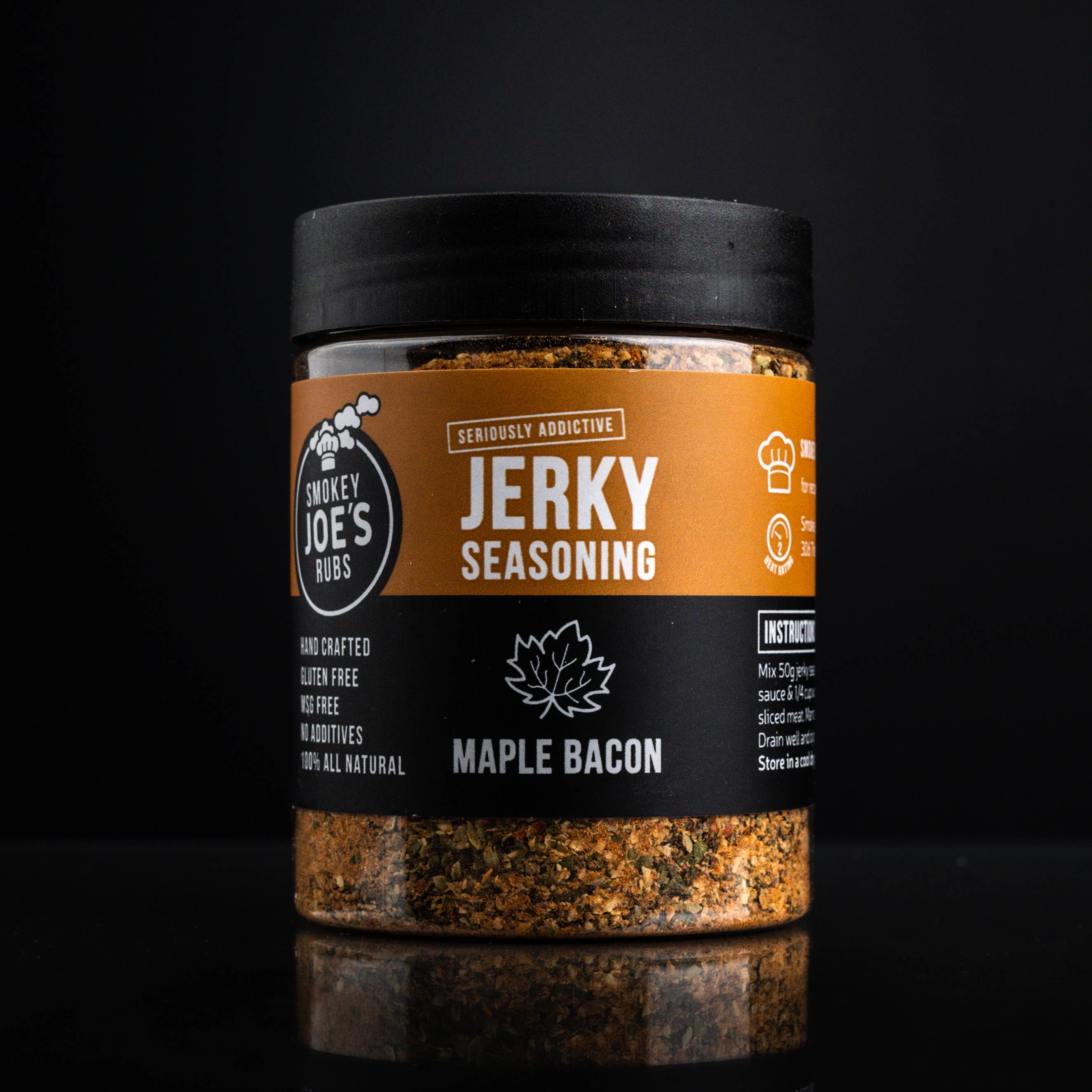 SKU: 042 Made in Australia Ingredients: Cracked Pepper, Onion, Garlic, Smoked Paprika, Coriander, Lemon Myrtle, Parsley, Chilli Flakes, Production: No added nitrates or nitrites, No artificial sweetenersand No preservatives Shelf life: 12–24 months Storage: Shelf-stable Product language: English Weight: 200 g (7.05 oz) Dimensions: 7.5 x 7.5 x 9.5 cm (3 x 3 x 3.7 in) EAN: 0675162930405