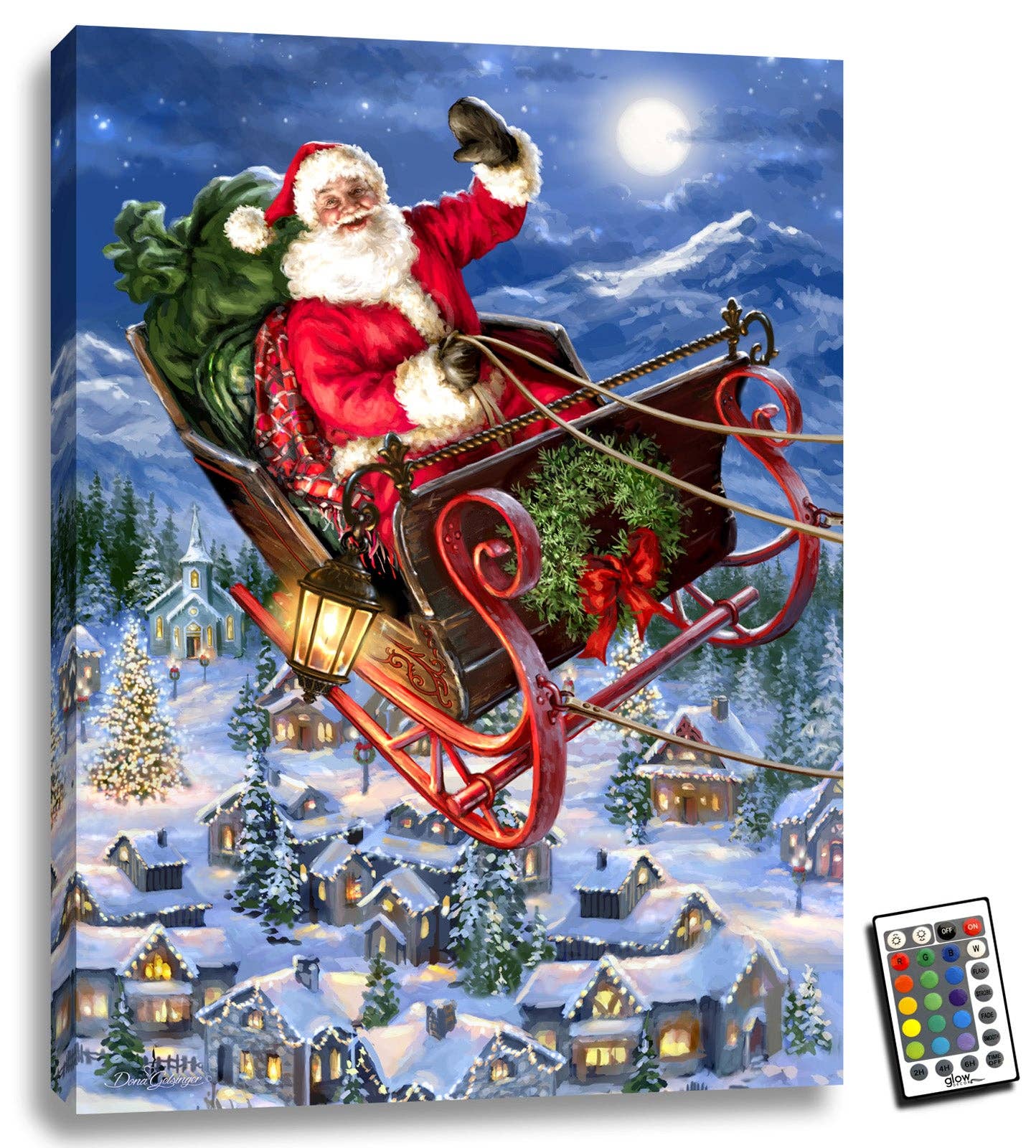* 16" x 20" Lighted Canvas * Fiber Optic / LED Technology * Auto Timer: On 6 hours / Off 18 hours * Requires AA batteries, not included * Artwork by Dona Gelsinger About the Art: Experience the magic of the holiday season with our A Christmas Journey 16x20 Fiber Optic Canvas. This beautiful piece of art features a stunning red horse-drawn carriage in front of a charming chapel, both illuminated by twinkling fiber optic lights that bring the scene to life. This canvas is the perfect addition to any home during the holidays, whether you're looking to decorate your living room, bedroom, or even your office. It's a timeless piece that captures the beauty and wonder of Christmas and is sure to bring joy and warmth to all who behold it. Explore More by the Artist: Dona Gelsinger Products | Glow Decor