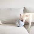 BREUER is inspired by the minimalist shape of tetrapods and named after Marcel Breuer who is known for using prefabricated concrete in his architectural design. Built with the simple philosophy that form follows function, the shape is designed to stand up at all angles and for an easy grip with paws. The play object has 2 squeakers + 2 crinkle paper clusters hidden in the corners, which are sized to massage the jaws easily. When rested, Breuer turns into a soft sculpture and decorates a contemporary home.