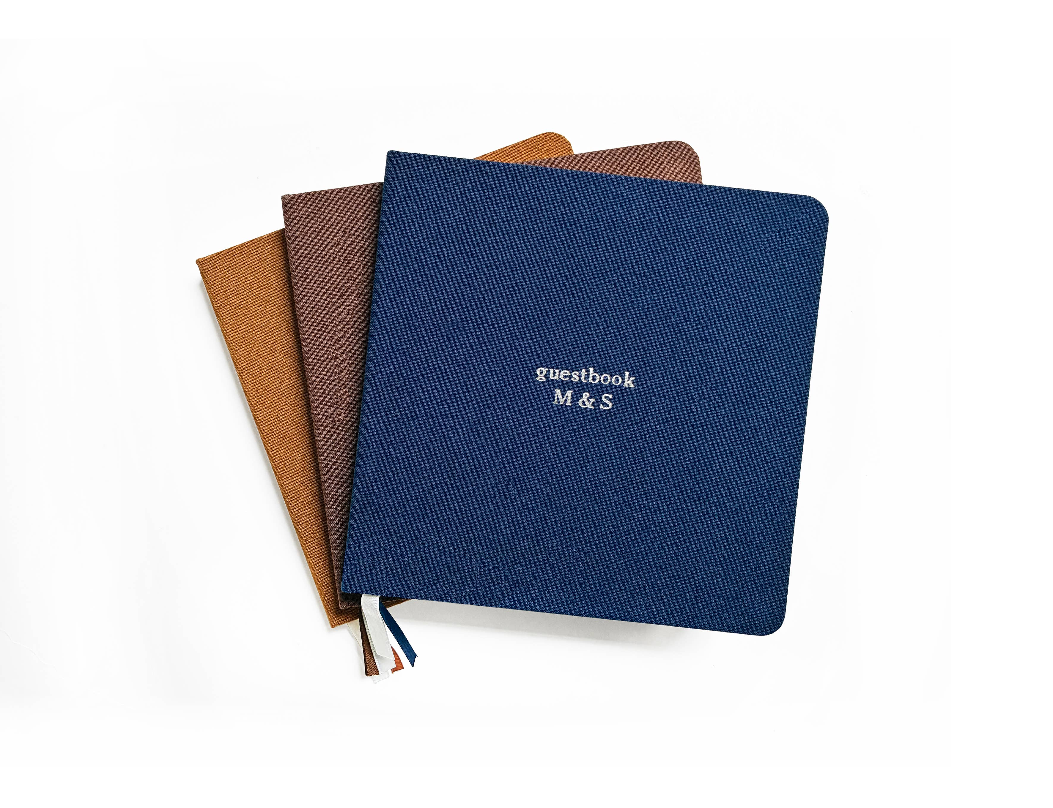 Stay organized in style with these classic linen-covered square notebooks, custom pressed with your own foil embossed text. Adorned with your shop name, town name, or other favorite phrase in your foil press color of choice, these blank books bound with linen hardcovers add the perfect customized touch. Each notebook comes with the same letters foil pressed / embossed on the cover in a timeless serif font, in your choice of foil color on a deep olive green, sandy caramel beige, or earthy rust brown linen hardcover. Journal size is 5.5" x 5.5"; 80 blank pages / 160 sheets. Interior paper weight is 120 gsm, and is designed to hold up to ballpoint, rollerball, & fountain pens. Each hardcover notebook comes with two page marker ribbons. These customized notebooks make beautiful travel notepads, sketchbooks, gratitude journals, to-do lists, bullet journals, graduation, wedding, or corporate gifts, or team notebooks. Studio Portmanteau, Grants Pass, Oregon, USA