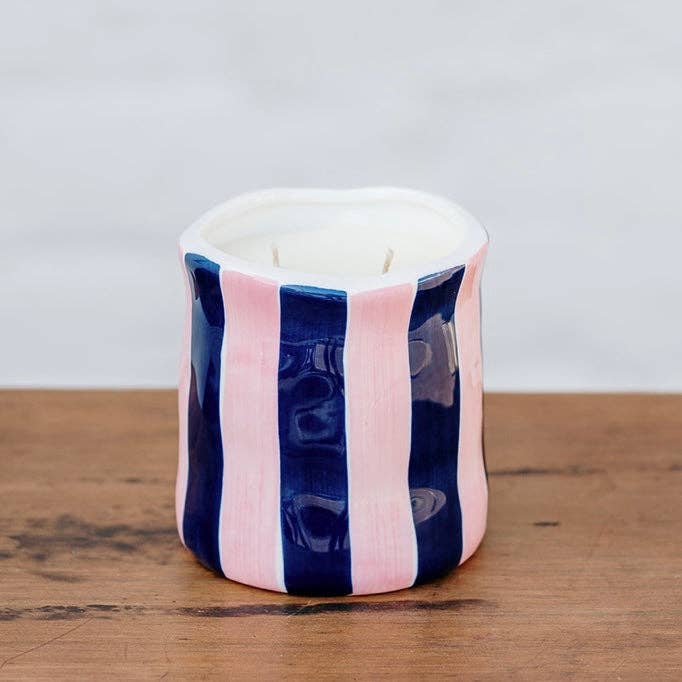 P E O N Y S U E D E Top notes: Red Apple Middle notes: Peony, rose, Carnation, Jasmine Base notes: Suede Hand poured in Melbourne, 100% Soy Wax, Fragrance Oil Jar dimensions: H - 11cm Dia - 10cm Packaged in a zesty striped gift box - perfect for gifting and retail