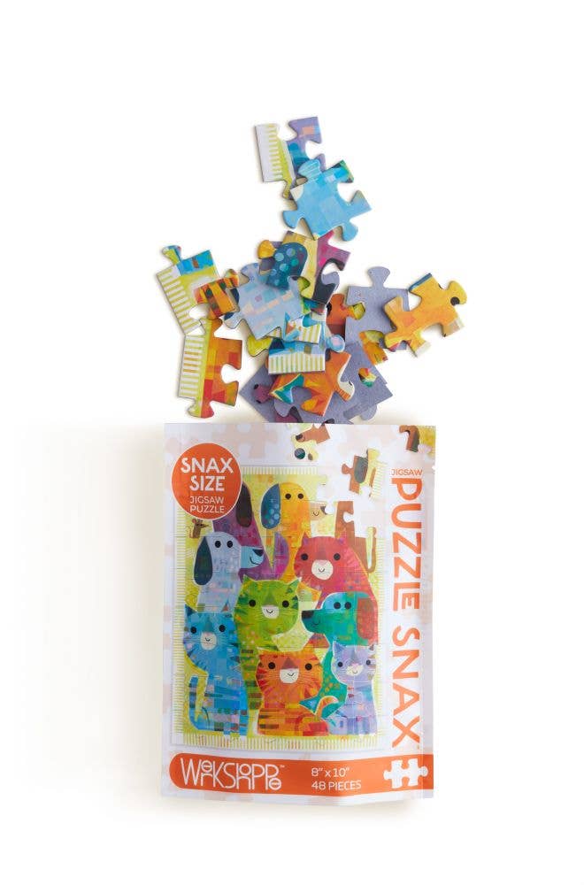 WerkShoppe 48 Piece Snax Puzzle – Little Critters Product Description: Step into the enchanting world of nature with the WerkShoppe 48 Piece Snax Puzzle – Little Critters, illustrated by Clare Young. This delightful puzzle captures an adorable scene filled with charming critters, making it an engaging and imaginative challenge for young puzzlers. Designed for on-the-go fun, it’s perfect for travel, playdates, or framing as a keepsake. Crafted with eco-friendly materials, it ensures a safe and sustainable puzzling experience. Key Features: Whimsical Nature-Themed Artwork: A delightful and engaging scene featuring lovable little critters. Premium Eco-Friendly Materials: Made from ESKA® 100% recycled board and printed with non-toxic vegetable-based ink. Kid-Friendly Travel-Friendly: 48-piece puzzle with ribbon-cut pieces, perfect for children aged 5+. Portable Convenient: Comes in a resealable pouch for easy storage and transport. Why Choose This Product? Perfect for