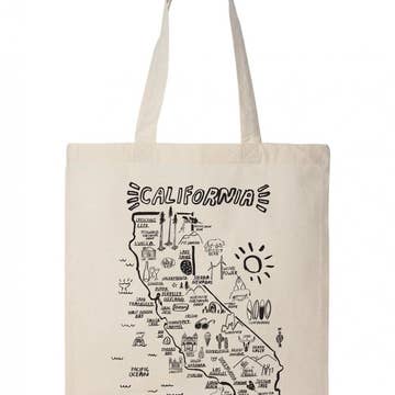 Grab a whiskey and your best dancin' boots, because we're headed to Graceland! Whether you're you can't get enough Dolly or Elvis, or just have an affinity for log cabins, there's somethin' for everyone in Tennessee. 15" x 16”. Screen printed by hand on natural canvas tote.