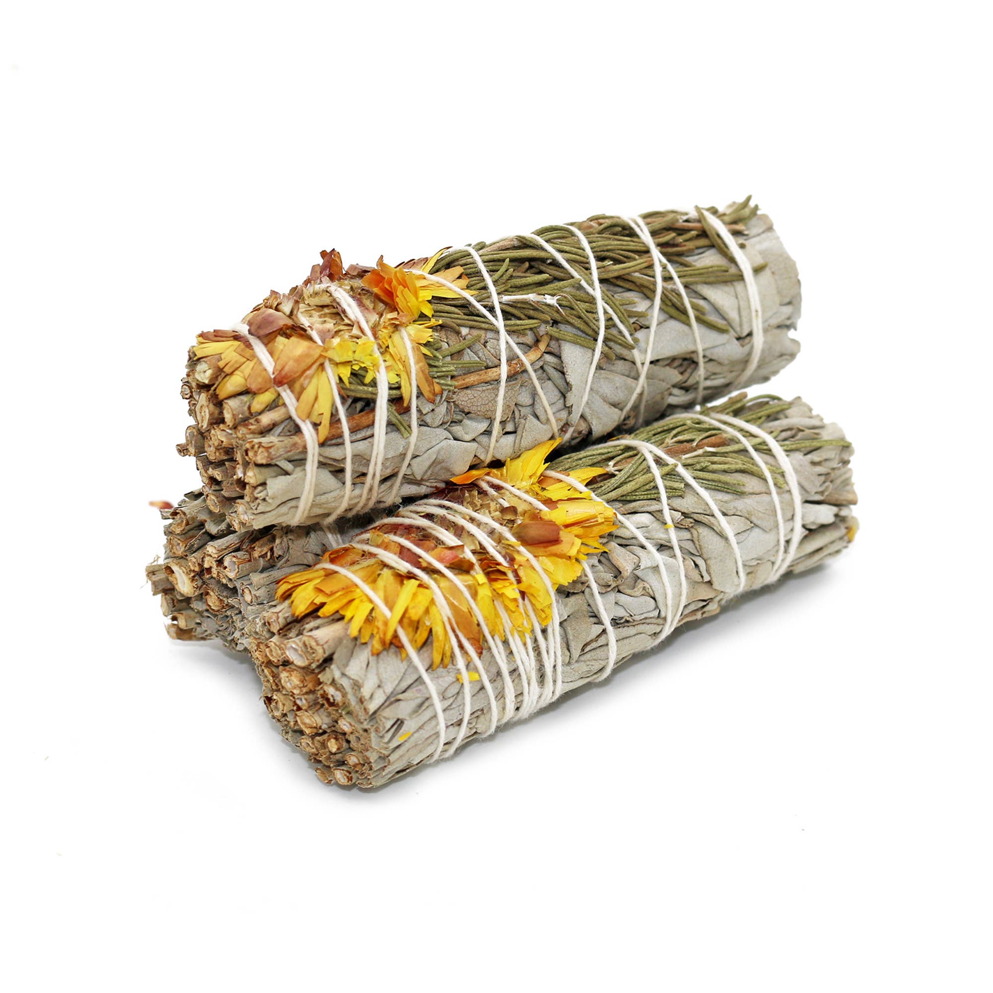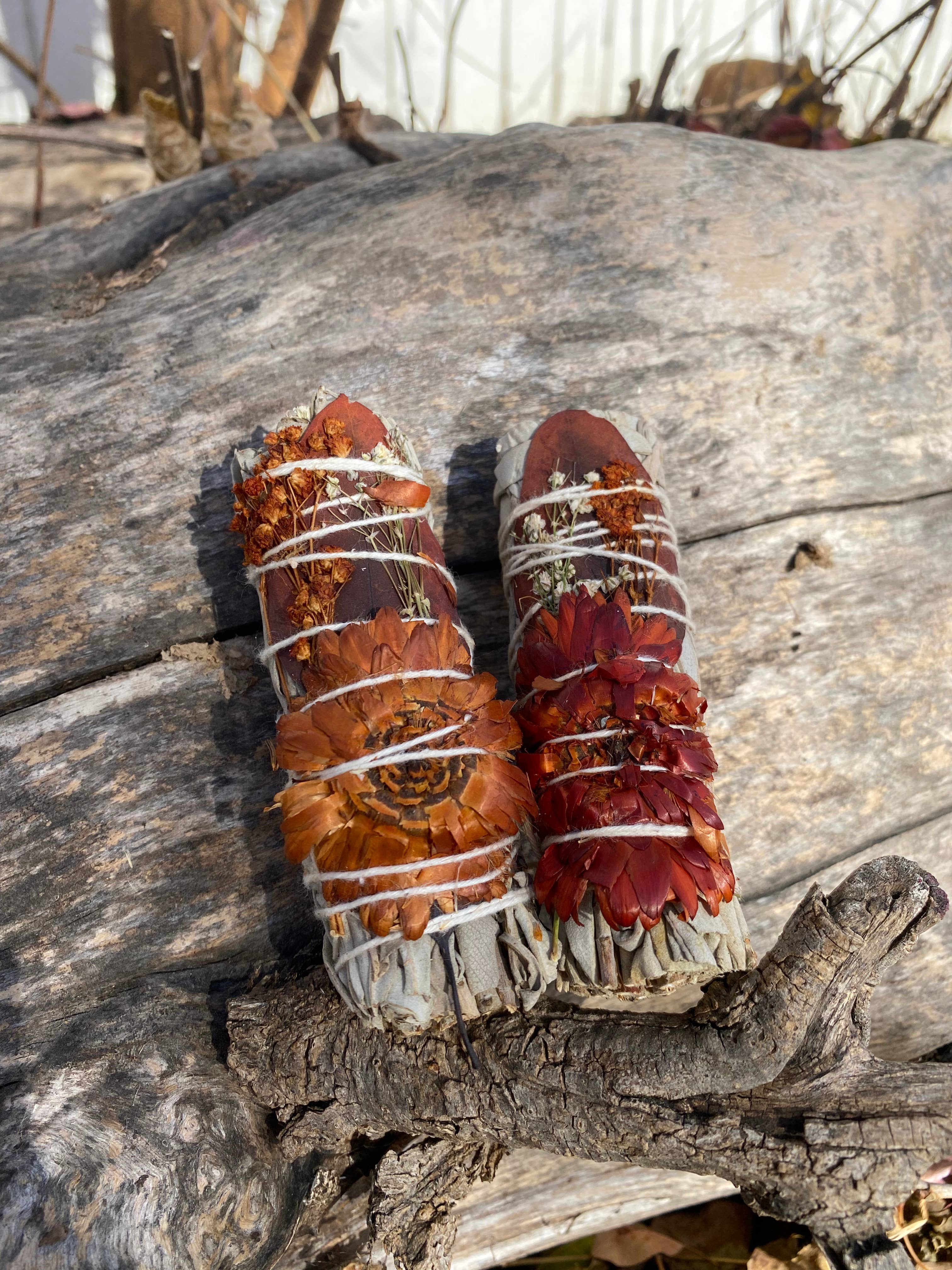 4" Organic White Sage with Dried Flowers and Leaves ORGANIC: Sourced responsibly in California, white sage (Salvia Apiana) is proven to neutralize negative energy, kill harmful bacteria, improve sleep, alleviate anxiety and stress. When burned the smoke heals and brings one back into balance and cleanses the body and mind of negative spirits and impurities. Smudging sage has also been known globally to help relieve worry, open the mind, clear negative thoughts and feelings, and de-stress the spirit. TAKE PART IN A SACRED TRADITION: Sage is a traditional medicine plant of the Indigenous peoples, used for healing and ceremony. It is used for cleansing and purification, and to open people up to a greater connection with the sacred.