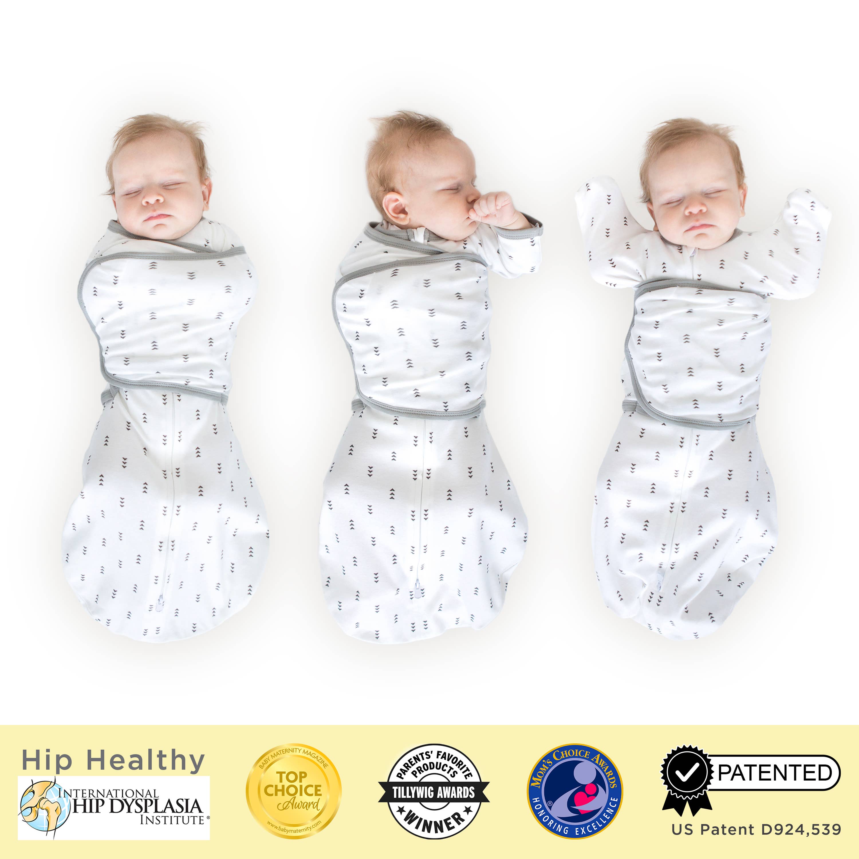 The Omni Swaddle Sack is the newest innovation in swaddling and is already the recipient of many awards. The Omni makes it very easy for new parents to swaddle their newborn, and it allows for a variety of arm positions for swaddling safely. The Small Omni Swaddle Sack fits babies 6-14 lbs, 0-3m; and the 3M fits 12-18 lbs, 3-6m. The adjustable wrap is narrow and does not interfere with baby's hips, and the soft hook-and-loop fasteners make it easy to swaddle baby. The 2-way zipper allows parents to unzip from the foot to change baby's diaper without unwrapping the swaddle. The 2-way zipper makes it easy to place baby in the sack by unzipping from the top. The uniquely shaped 1/2 length sleeves have foldover mitten cuffs that may be worn open or closed. Parents can open one or both cuffs, so baby can self-soothe by sucking on hand or close the cuffs to protect from facial scratches. Super soft, 100% premium cotton knit is breathable, stretchy, and natural. Patented.