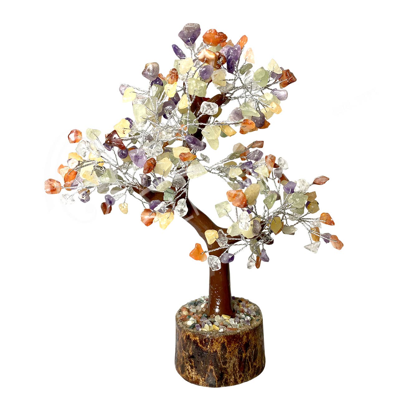 Immerse in the serene energy of our GEM TREE from Oceanic Linkways Inc. Each tree stands between 7.5 to 8 inches tall and is adorned with 160 beads of mixed stones. This spiritual stone/crystal piece, sourced from 19 different countries, is designed to bring tranquility and balance to your space. Ideal for home decor or as a unique gift, our Gem Tree reflects our mission of providing high quality products. Unearth the potential of gemstones with us.