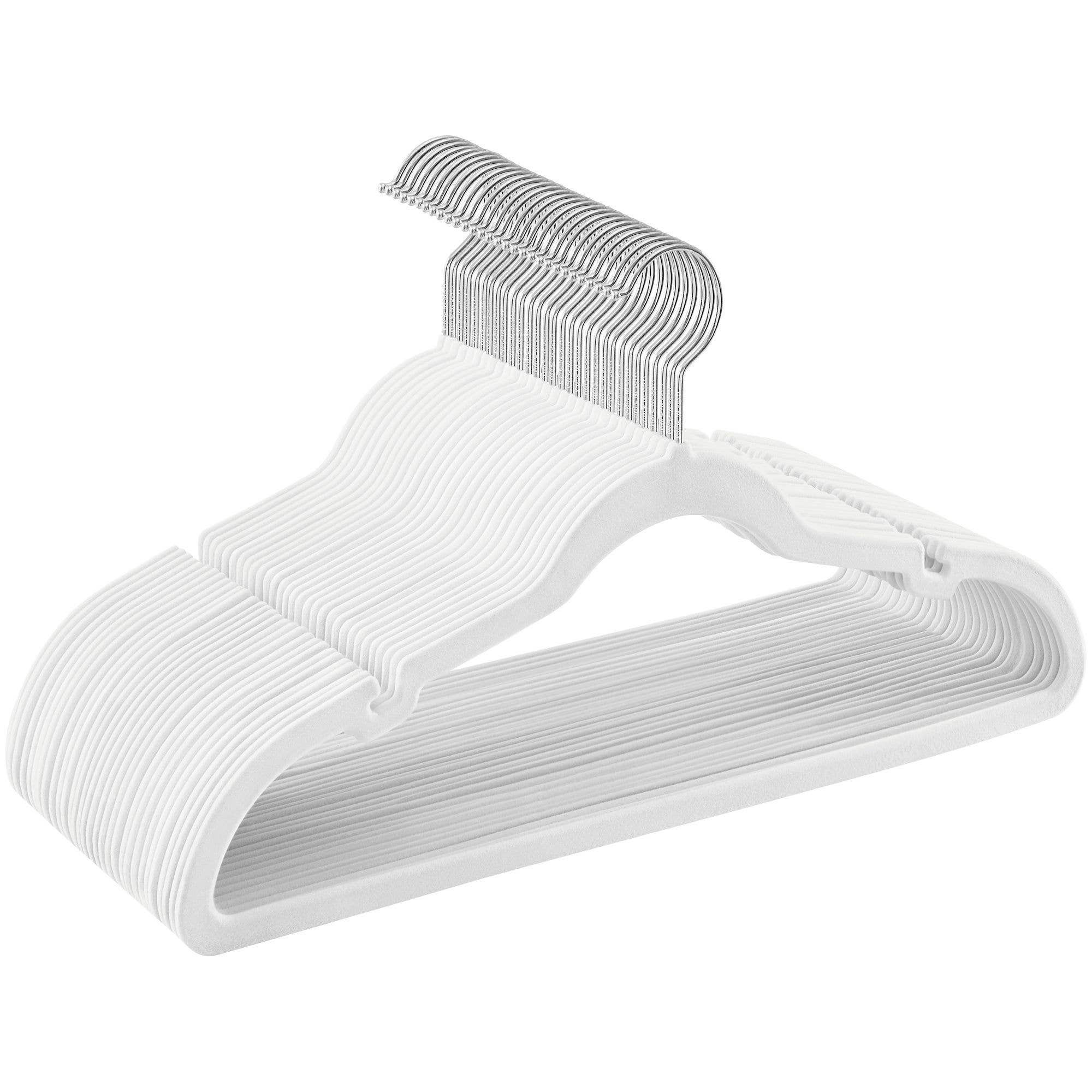 Greenwestons 30-Pack Pants Hangers, 16.7 Inch Velvet Trousers Hangers, with Adjustable Clips, Heavy Duty, Non-Slip, Space-Saving, for Pants, Skirts, Coat, Dresses, Tank Tops, Gray Color: White Material: ABS Plastic, Nylon Velvet, Metal Size of Each Hanger: 16.7”W x 9.3”H (42.5 x 23.5 cm) Total Weight: 4 lb (1.8 kg) Max. Static Load Capacity of Each Hanger: 5.5 lb (2.5 kg)