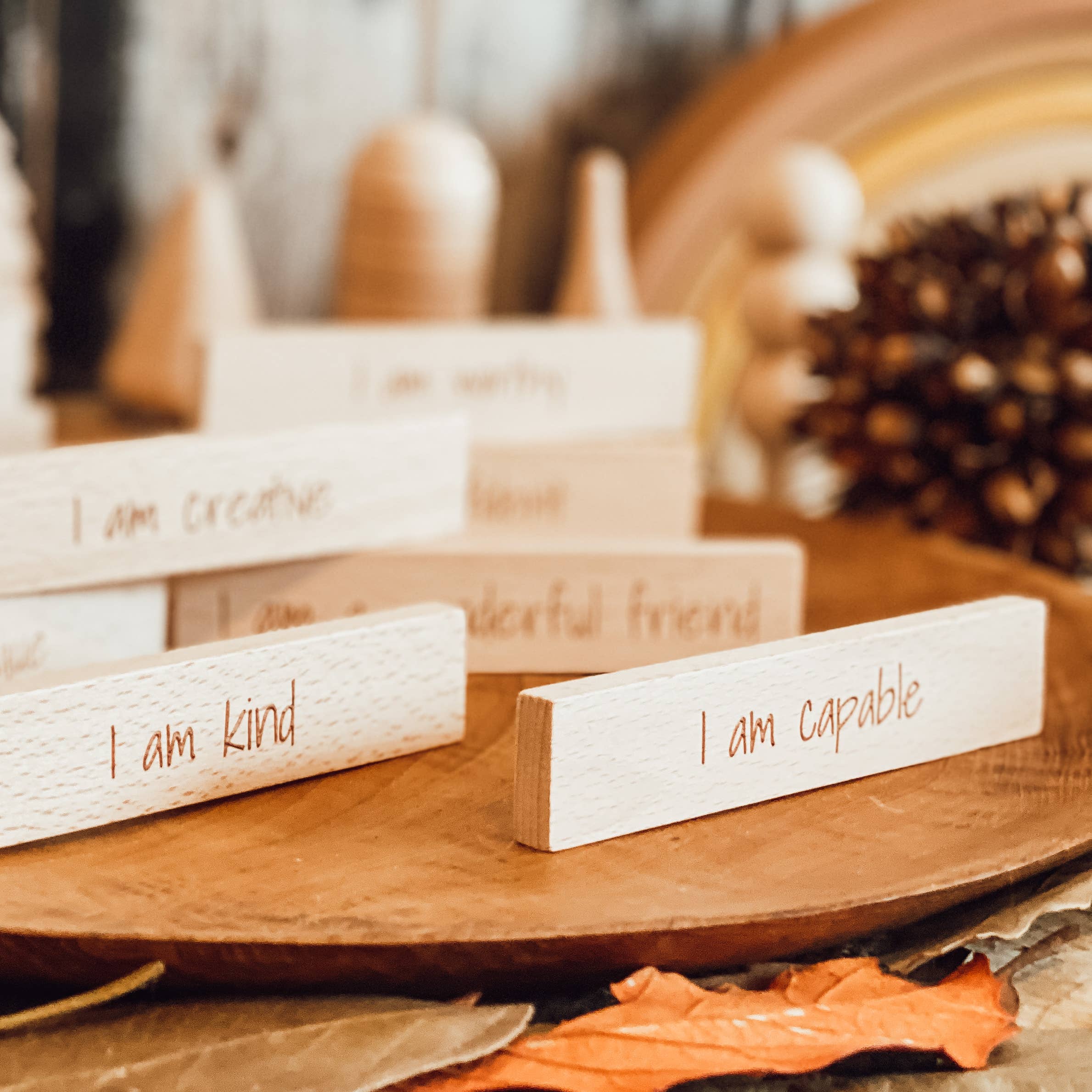 A small world play scene to spark imagination. Our products are made from plantation timber. We love to make toys that can help children to grow through their development stages. Children love learning through play.