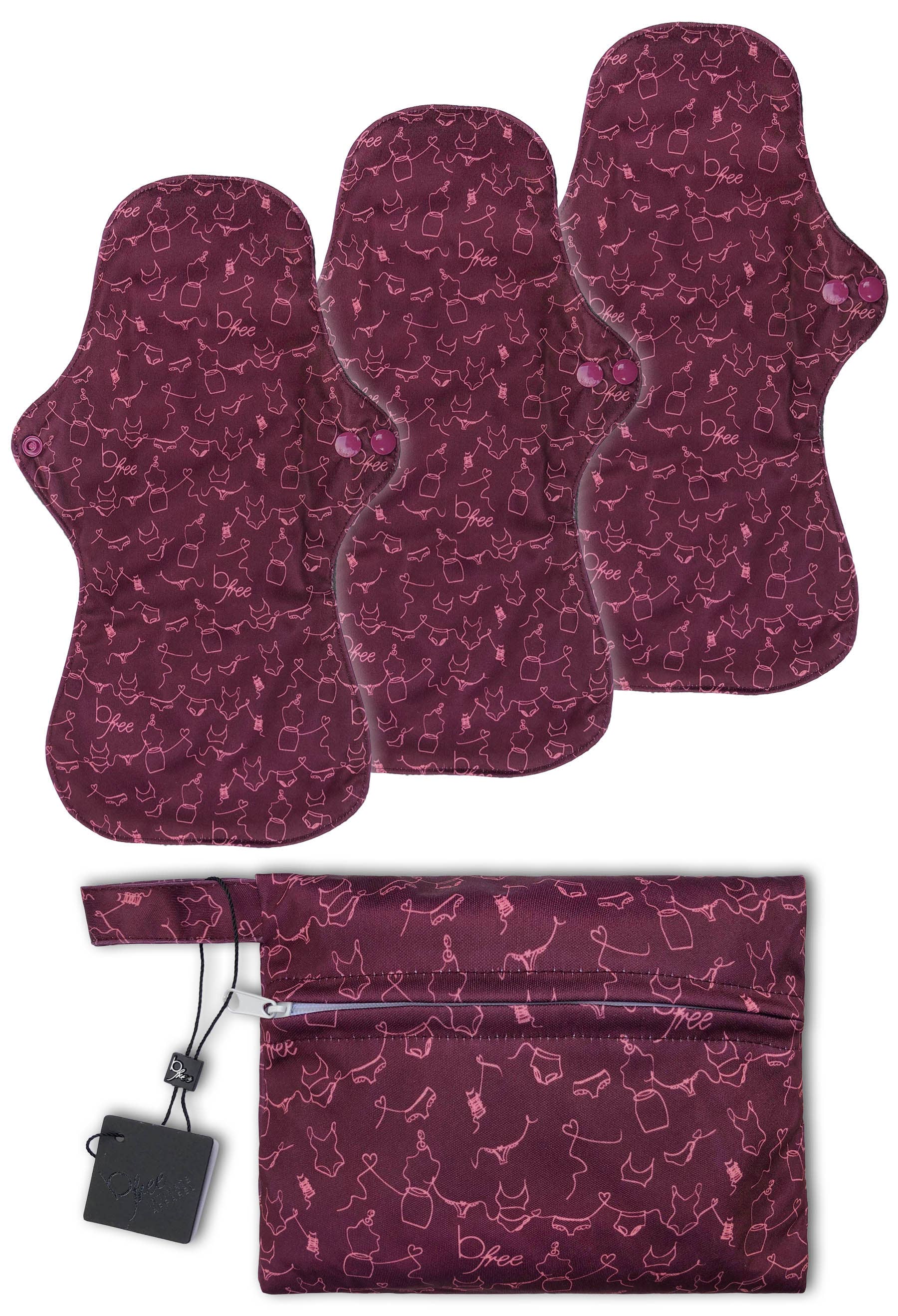 Eco Pad - Overnight (80-120ml)/ 33 cm Charcoal Bamboo Cloth Pad. Back up your sustainable period kit with charcoal bamboo cloth pads. The charcoal bamboo against the skin is very soft, natural and non-irritating. It also has antibacterial properties, which helps control odour and breathability. Used pads can be folded up and snapped closed while on the go, and kept in one of our handy wet bags. Also available in 5 pack bundles with a bonus wet bag. Discounted bright prints are in an alternative shape to our standard cut. Wings are one layer only so do not have absorbency layers. This does reduce the absorbency capacity of the pads as there is no overspill capacity onto the wings.