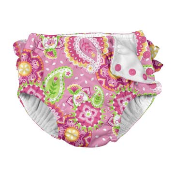 Our Award winning reusable swim nappy is the perfect accessory for the beach, lake, in the backyard under the sprinkler, or the pool. A sized nappy for the perfect fit is available in Small, Medium, and Large. - Lightweight and breathable. - Hand-illustrated fashionable designs. - Small boosters sewn in for extra protection. - Beautiful and unique prints. - Quick drying. - Machine washable. - The public pool and swim teacher approved. - Soft elastics around the leg offer containment while in the water. - Fade and chlorine resistant. - Containment of solids only. Normal swimmers offer no protection and disposable swim nappies hold water which weighs your baby down. If not soiled, you can rinse and reuse it all day. Small size fits 3.5-7.5kgs – approx birth to 4-6 months. Medium size fits 6-12kgs – approx 5-14 months. Large size fits 9-16.5kgs – approx 9-30 months.