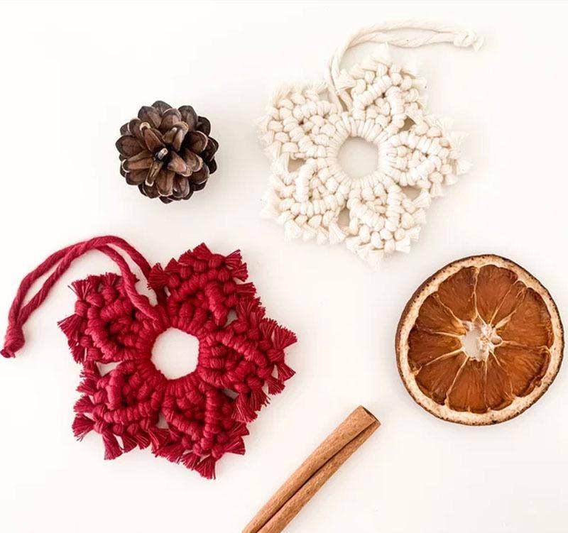 Macrame Snowflake, Macrame Christmas Decoration Ornament, Christmas Tree Decoration, Boho Christmas, Xmas Tree Ornament Add a sweet, handcrafted macrame snowflake to your Christmas tree this year. Hang it from a hook or door handle to spread some boho festive cheer. SIZE: approx. 25cm(included hanger) 12cm (just the flake) MATERIAL: natural cotton string, natural twine All the macrame cords come in classic Christmas color, whilch will make a creative and cute Christmas charm, bringing you a special festival atmosphere. Our Macrame kit comes with an easy to understand instruction to better assist you in completing the project, just enjoy this handcraft activity with your partners. It will be a warm and lovely gift or party favor for your friends and family on Christmas. He or she will surely be surprised by this cute handmade charm full of your love.