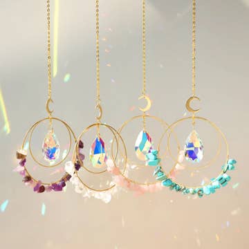 ✧ DETAILS - Total length about 33.4 cm. ✧ ARTISTIC DESIGN - Our Suncatcher is expertly crafted with natural gemstone and metal frame, designed with intricate details that enhance its beauty and charm. The frame holds a series of high-quality crystals that are chosen for their ability to reflect and refract light, creating a mesmerizing display of colors and patterns. ✧ GREAT DECORATION - Our Round Suncatcher Crystal Rainbow Prisms can be hung on your home window, garden, curtain, balcony, doorway, wall, chandelier, etc, When these high-quality crystals are in direct sunlight they cast thousands of beautiful rainbows onto your room walls. It will perfectly fill the blank in any room. ✧ PERFECT GIFT - This product makes a sentimental surprise for your friends, families, loved ones. Suitable for Valentine’s Day, Valentine's Day gifts, Easter, Christmas’ Day, Holidays, Spring, Autumn, Fall, New Year, Mother’s Day, Birthday, Party, Anniversary, Graduation, etc.