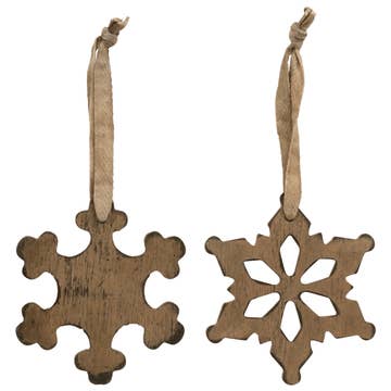 Antiqued Wooden Snowflake Christmas Ornament, 2 Assorted