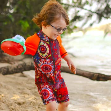 Sunshine, sandy toes and the sweetest swimmers to match. Our Zahli Swimmers are made for little beach lovers who live for summer days, pool dips, salty hair and chasing waves in style. Designed with a soft frill, full-length sleeves and our signature Zahli floral, these swimmers bring together comfort, coverage and cuteness. The buttery-soft SPF50+ fabric protects delicate skin from the sun, while the lightweight stretch keeps your little one happy and comfy all day long. Pair them with the matching Zahli Hooded Towel for the ultimate summer set - shop The Zahli Set here! Product Details: * SPF50+ sun protection * Soft, comfortable stretch fabric * Full-length arms for added coverage * Signature Zahli print * Quick-drying + gentle on sensitive skin If you’re unsure on sizing, feel free to reach out - we’re always happy to help.