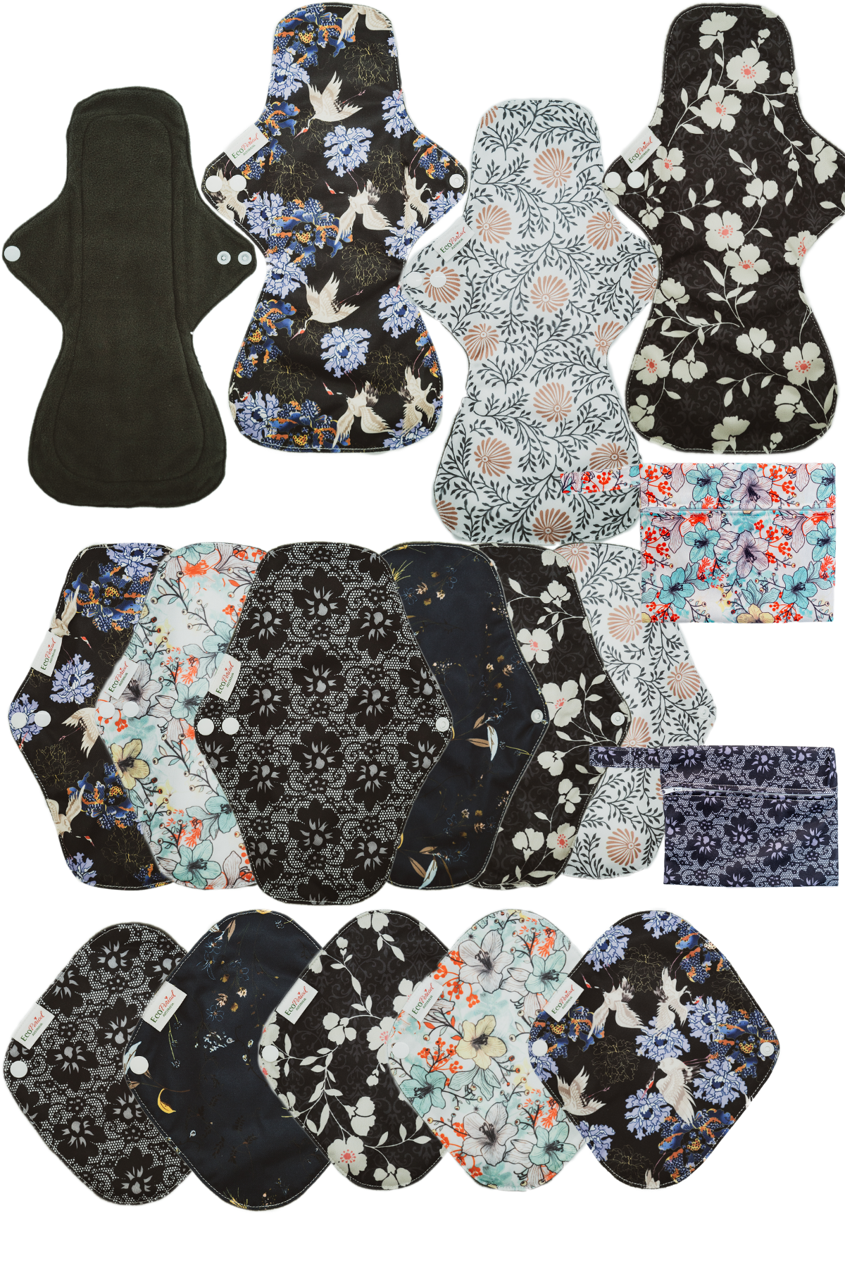 These small-size hannahPADs are an all-in-one, reusable menstrual cloth pads that are healthier on the body, reduce landfill waste, and save you money. Made from certified organic Cotton that is unbleached and non-dyed, which makes it safer to sit against delicate skin, they are especially ideal for those who have sensitive skin issues with store-bought disposable liners. With a special TPU waterproof coating on the inside of the outer layer to provide secure protection against leaks, hannahPADs have a higher level of absorbency than disposables, are more comfortable, and their unique double-stitching holds the absorbent layers and edges of the pad intact for durability. The small-size comes with double snap fasteners and silicone extra grip to inhibit slippage. HannahPADs will last for 2-3 years, depending on personal use and care. The small is a 2 PACK is a case of 6. NB: The patterns / colour designs will be chosen at **random** depending on availability.